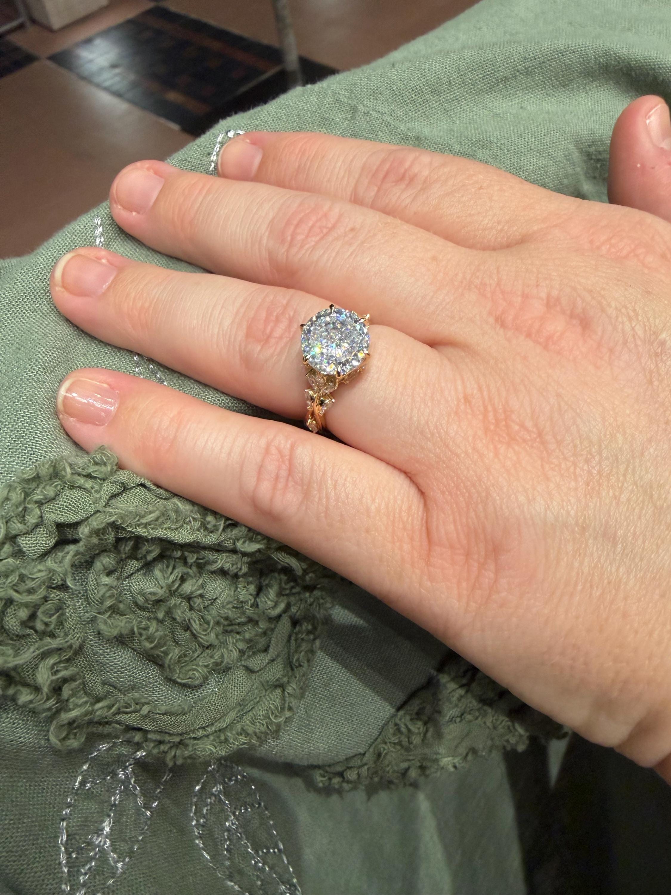 Ring is very beautiful and the pictures do not do it justice. My lady happy and the ring fit perfectly. That said I did receive a second ring due to the first one I ordered, 4 weeks prior, got lost in transit with no tracking. I contacted the seller and they immediately made another one for me free of charge with USPS tracking. All in all the ring is perfect and we are very happy with the quality of the ring.
