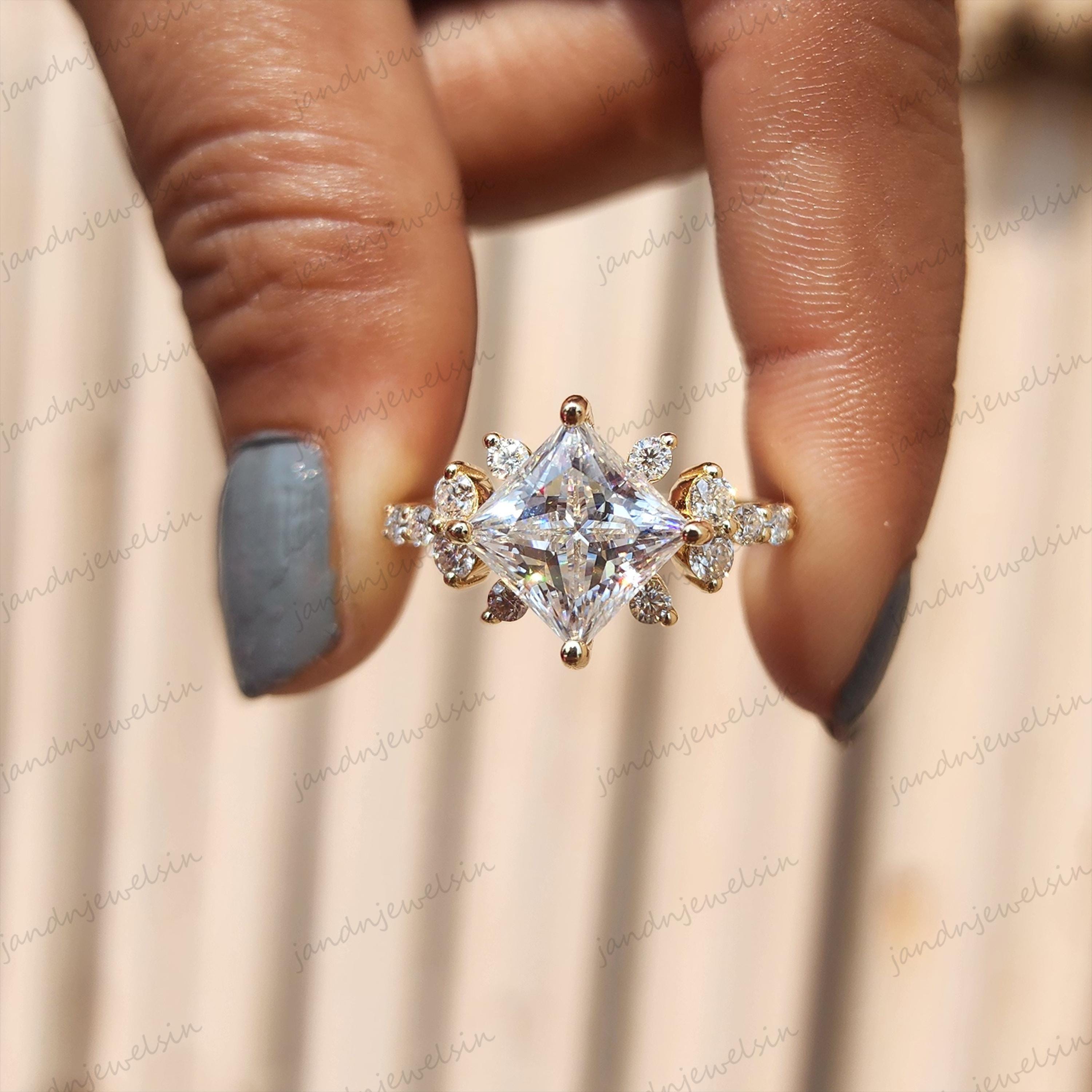 3CT Princess Cut Moissanite Engagement Ring Solitaire Cluster Ring 14K Gold Wedding Ring Promise Ring Anniversary Gift for Her Proposal Gift, princess ring, moissanite ring, wedding ring, engagement ring, 14k gold ring, 925 silver ring, solitaire ring, cluster ring, gifts for women, unique ring, personalized gift, rings, statement rings