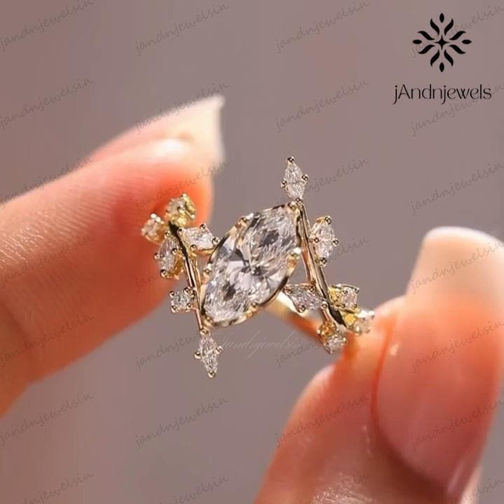 Marquise Cut Moissanite Engagement Ring 14K Gold Double Band Cluster Ring Unique Marquise Diamond Ring for Women Wedding Anniversary Gift