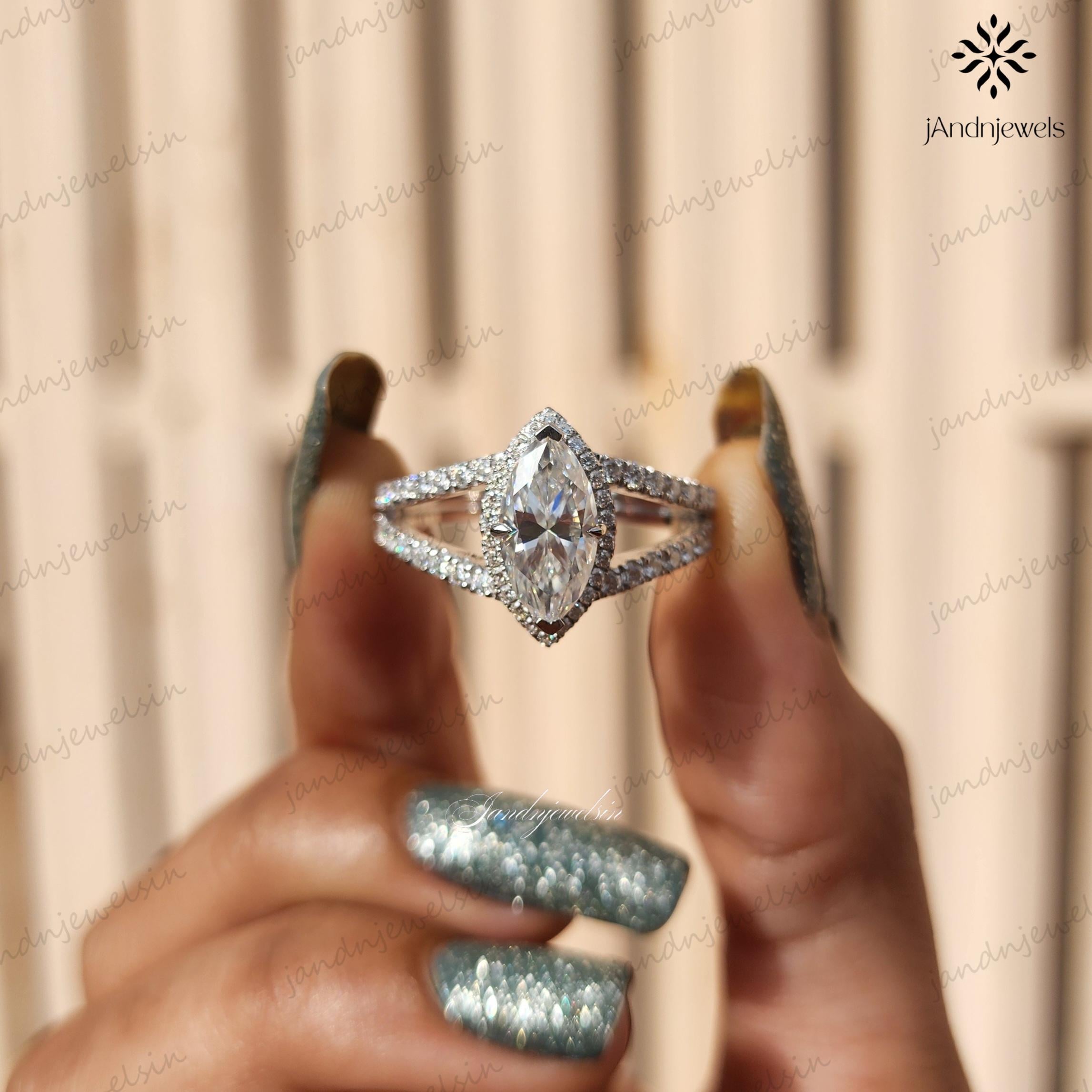 Halo Marquise Cut Moissanite Engagement Ring Ring Marquise Split Shank Ring Unique Wedding Ring For Women Diamond Ring Anniversary Gift