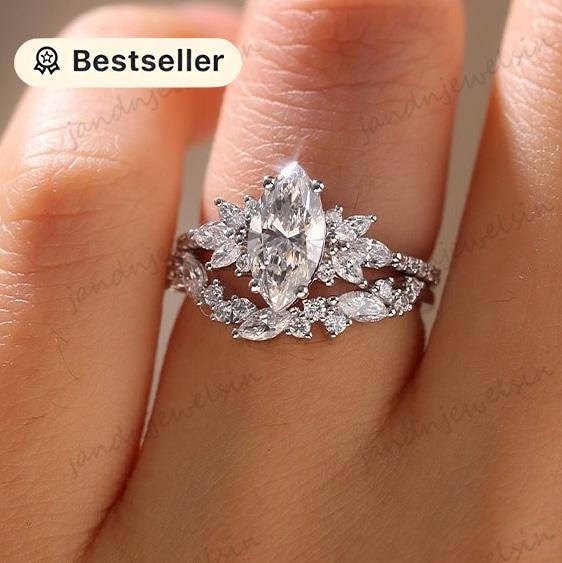 2CT Marquise Moissanite Engagement Ring Set Leaf Vine Wedding Ring Set Nature Inspired Bridal Set 4K Gold Ring Set Anniversary Gifts, vintage ring, cluster ring, marquise ring, 2ct moissanite ring, wedding ring set, engagement ring set, bridal ring set, 14K gold ring, gold ring, diamond ring, leaf band ring, unique ring set, anniversary gifts