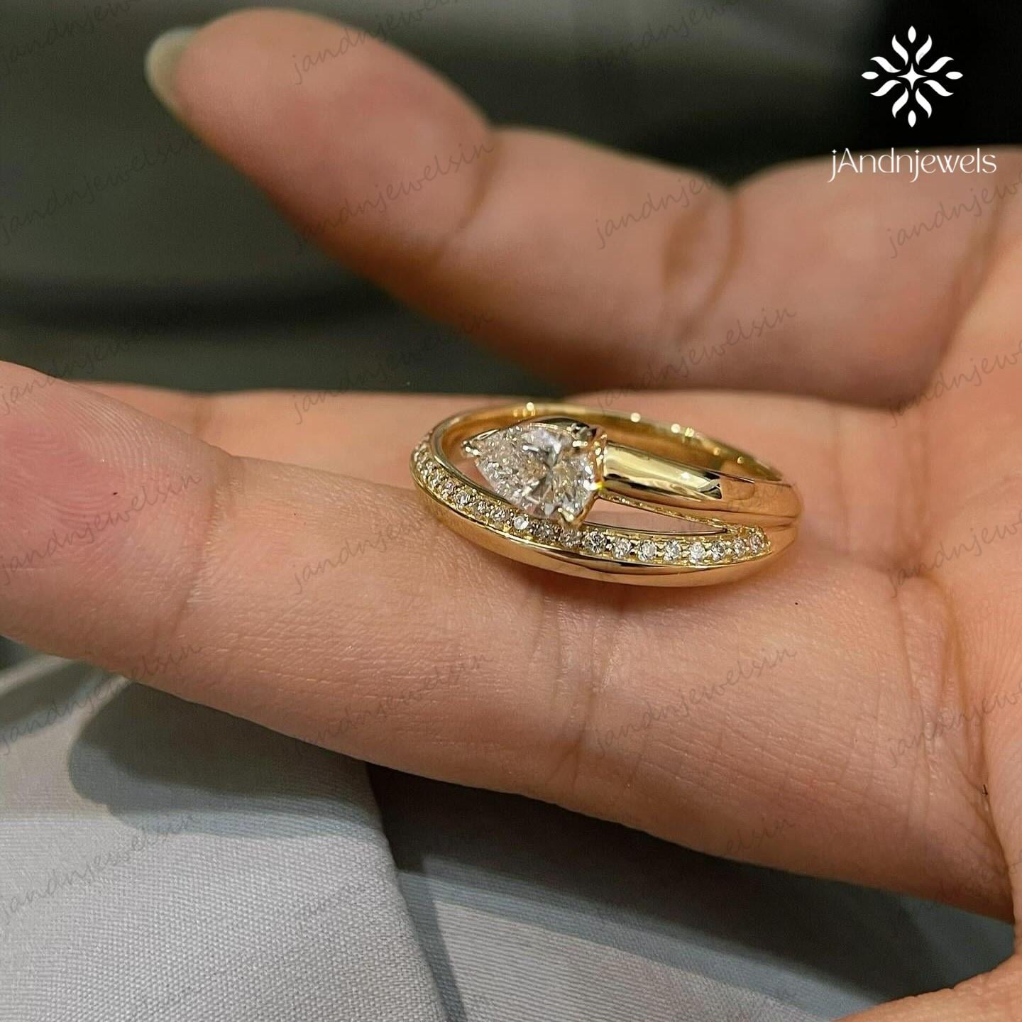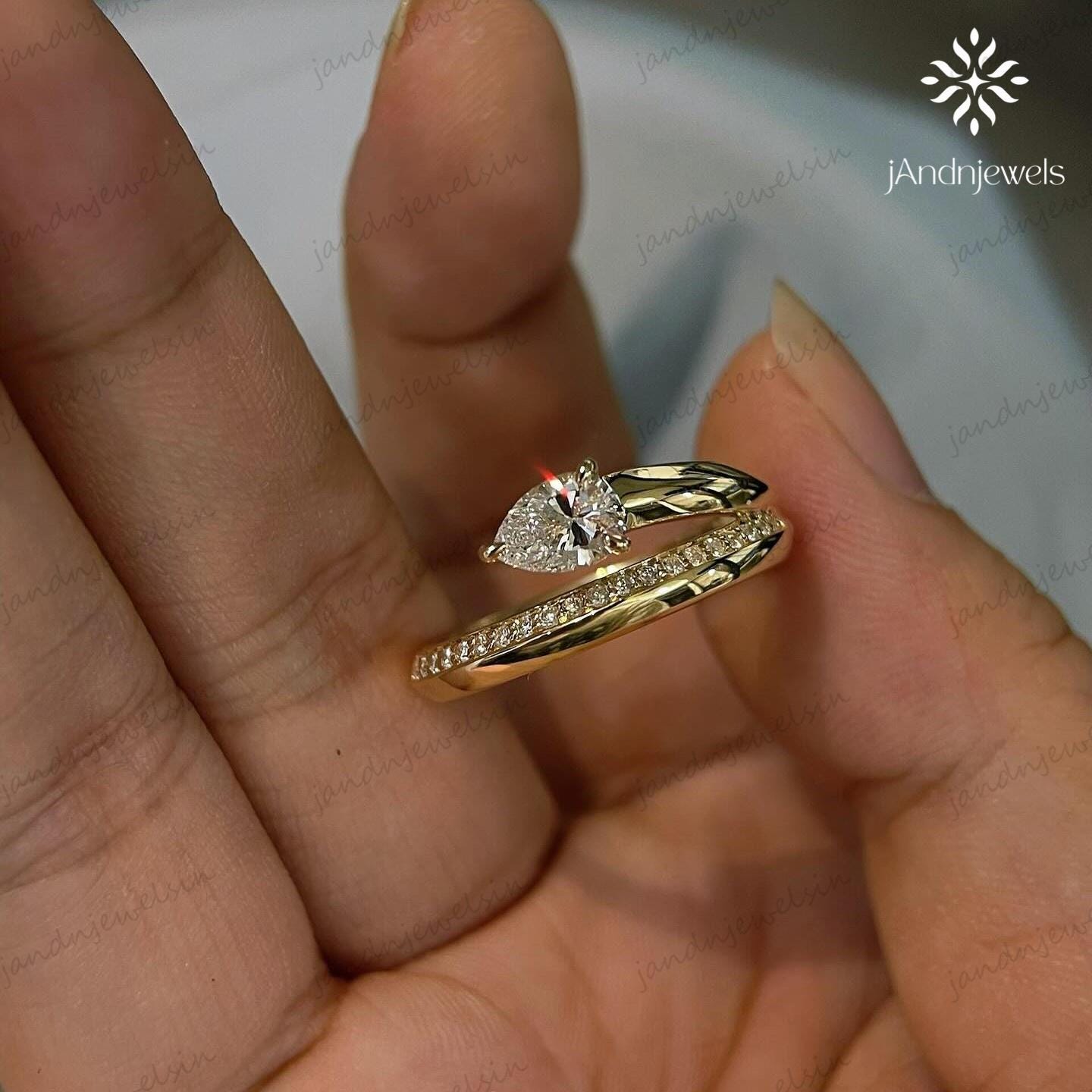 1.5CT Pear Cut Moissanite Engagement Ring Unique Pear Bypass Ring 14K Solid Gold Diamond Ring Wedding Ring For Her Anniversary Gifts