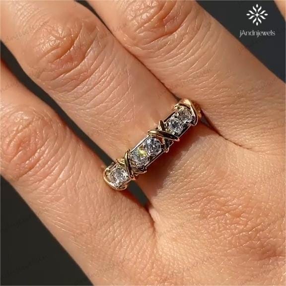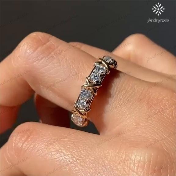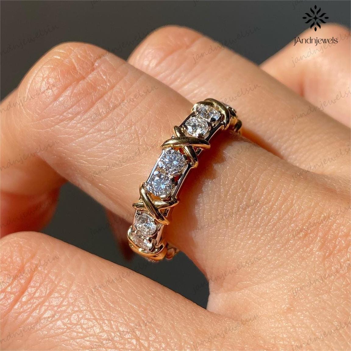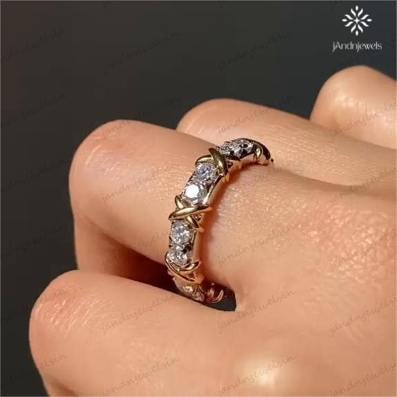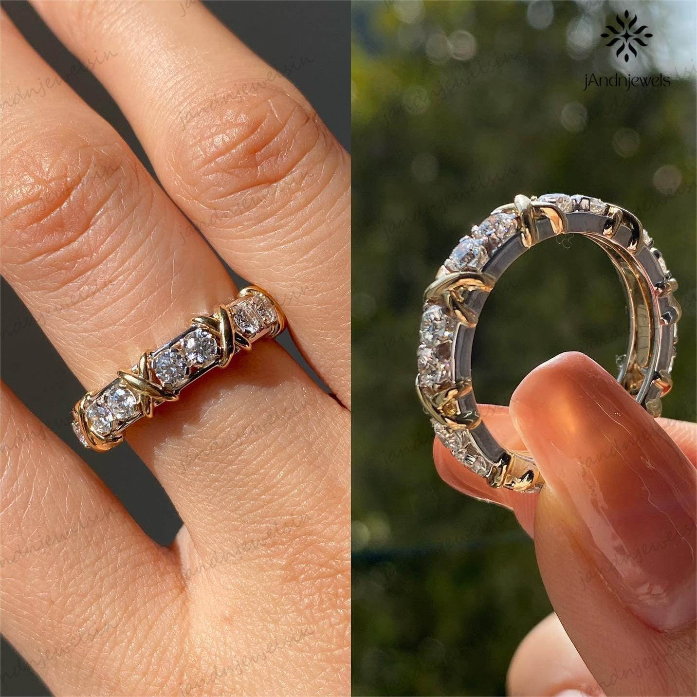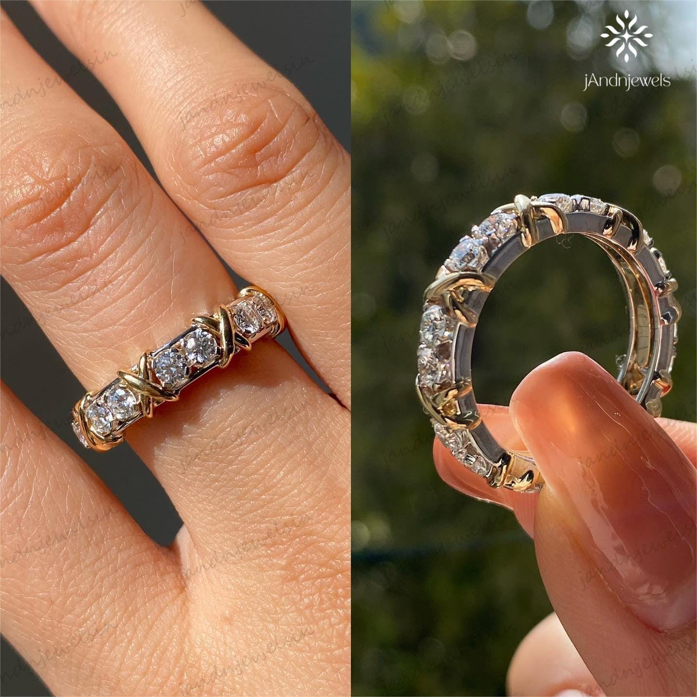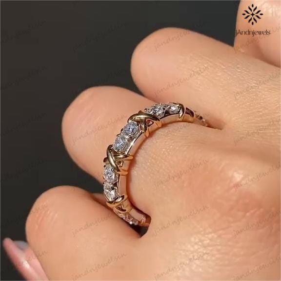 Two Tone Diamond Eternity Band Round Cut Diamond Ring with X Prong Setting in White & Yellow Gold Luxury Anniversary Wedding Ring, Celebrate everlasting love with this Two-Tone Diamond Eternity Band, featuring brilliant round-cut diamonds in a secure X-prong setting. Crafted in luxurious white and yellow gold, this elegant anniversary and wedding ring offers timeless sparkle from every angle. Perfect as a statement band, stacking ring, or meaningful gift for her, it blends modern design with classic sophistication. An ideal choice for brides, anniversaries, and luxury jewelry lovers.