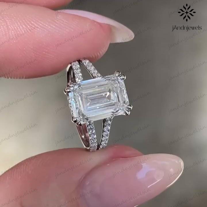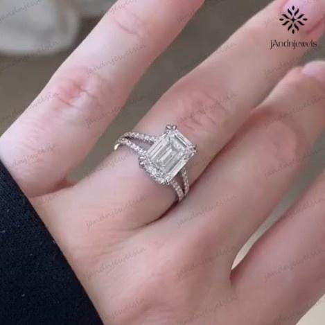 4CT Emerald Cut Moissanite Engagement Ring Solid 14K Gold Split Shank Hidden Halo Emerald Solitaire Ring Anniversary Gift for Women, Experience timeless elegance with this 4CT Emerald Cut Moissanite Engagement Ring, expertly crafted in solid 14K gold. The striking emerald-cut center stone is enhanced by a hidden halo and a graceful split shank design, adding extra brilliance from every angle. Perfect as a luxury engagement ring, anniversary gift, or statement solitaire, this piece blends modern sophistication with classic sparkle. An ideal choice for women who love bold, refined, and enduring jewelry.