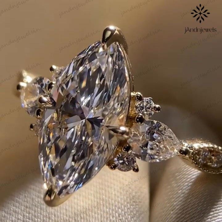 2CT Marquise Cut Moissanite Engagement Ring Three Stone Ring side Stone Pear Cut Ring Wedding ring Milgrain Band Anniversary Gift, marquise ring, moissanite ring, wedding ring, engagement ring, gold ring, unique ring, anniversary gift, promise ring, 14K gold ring, proposal ring, gift for her, gift for him, valentines day
