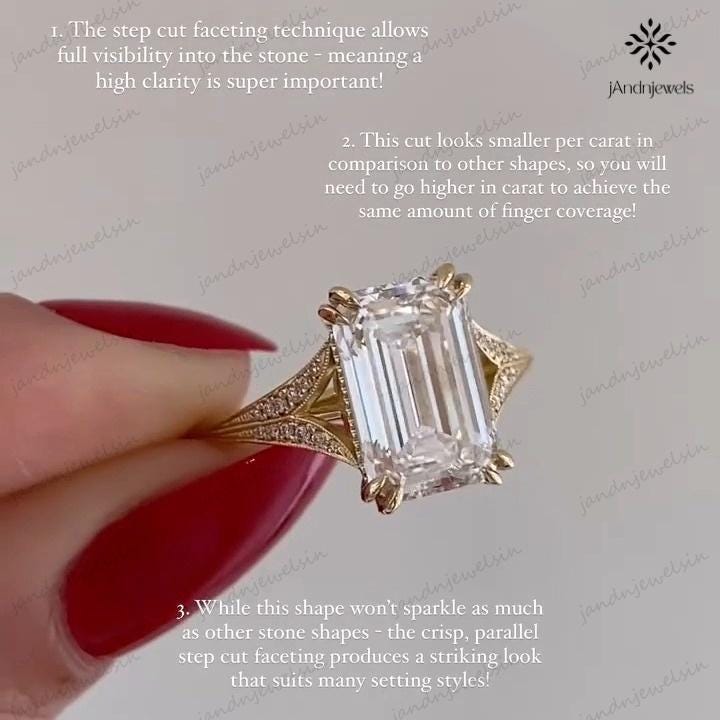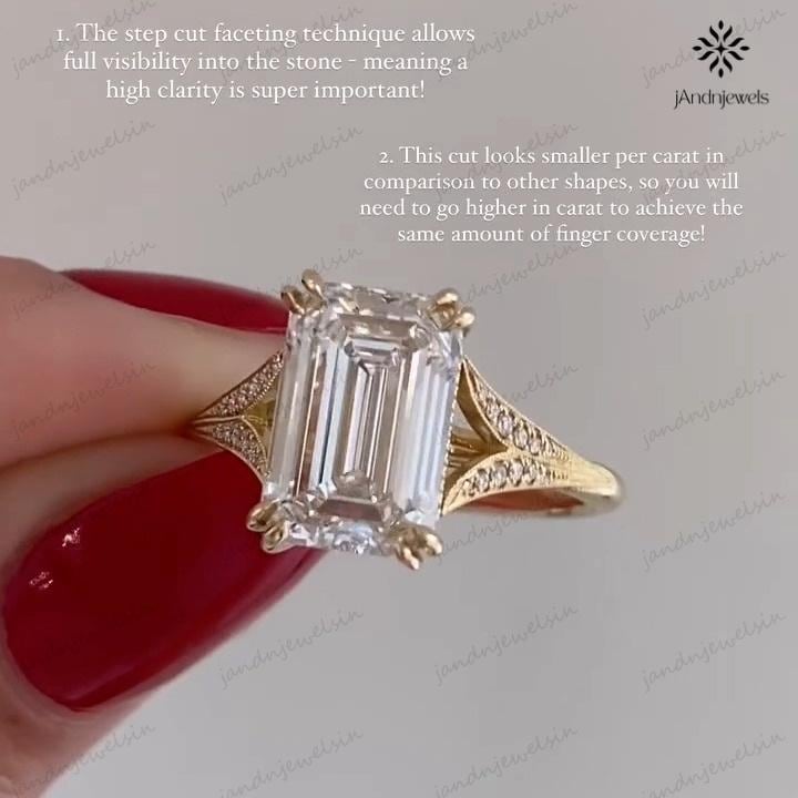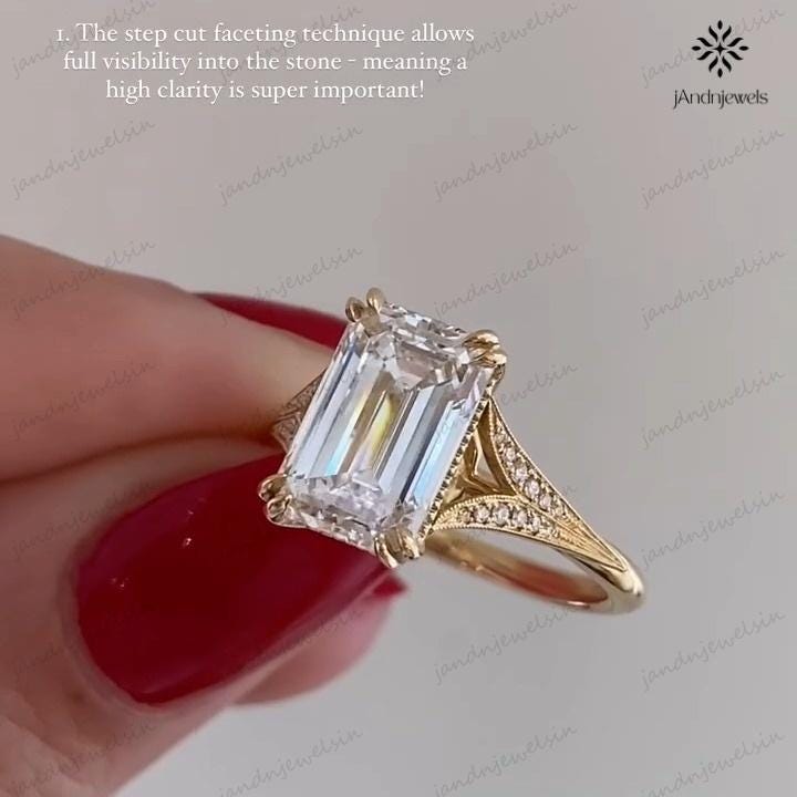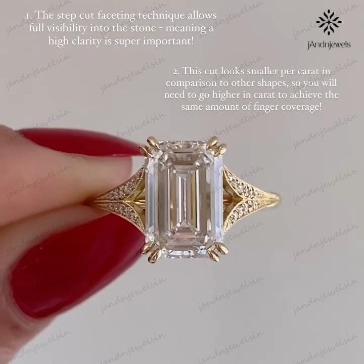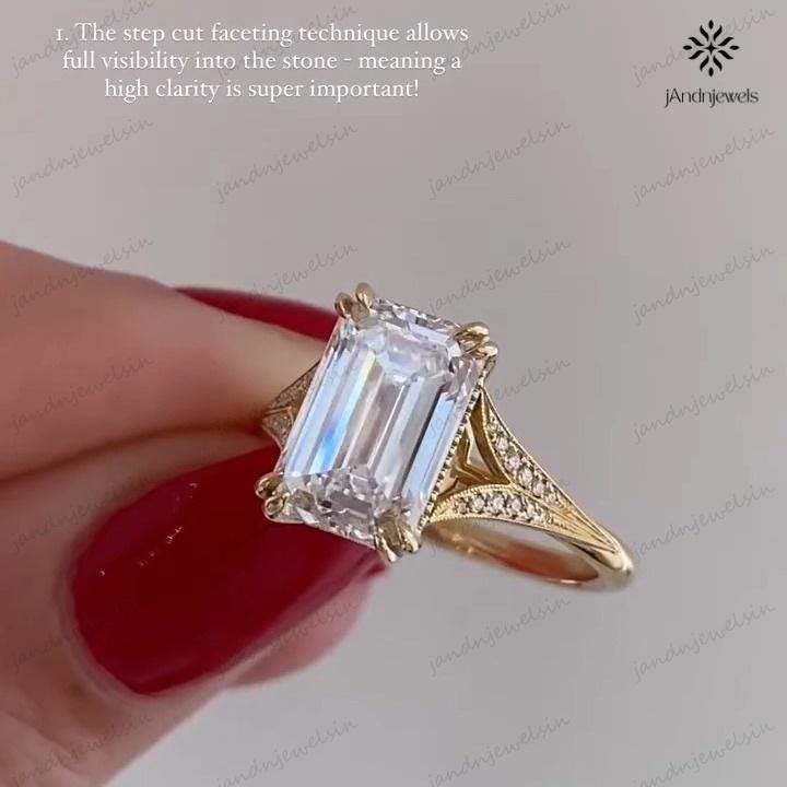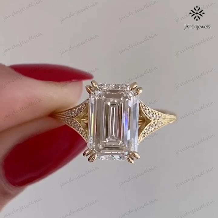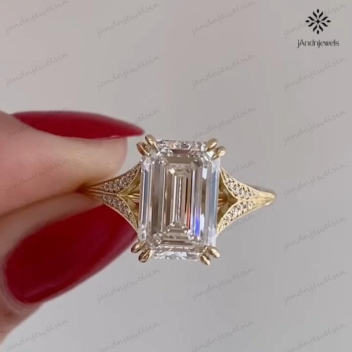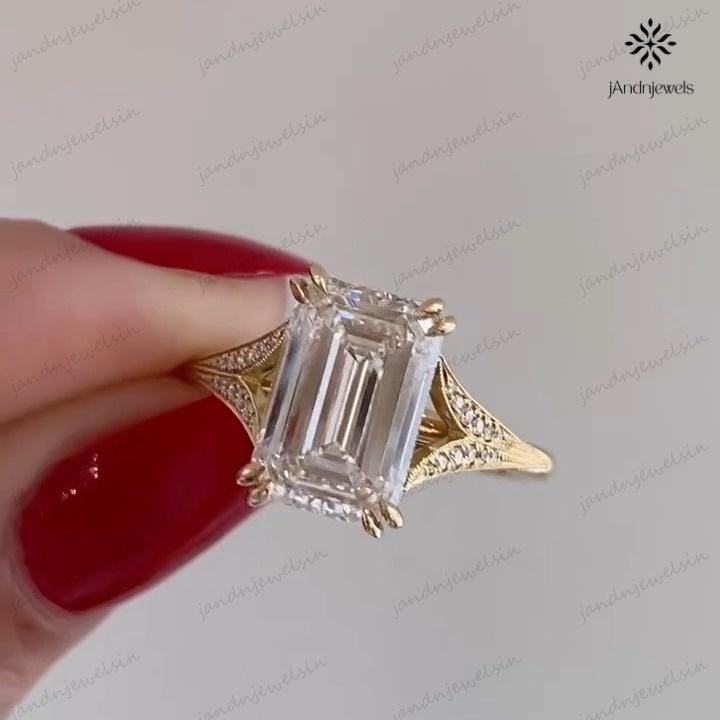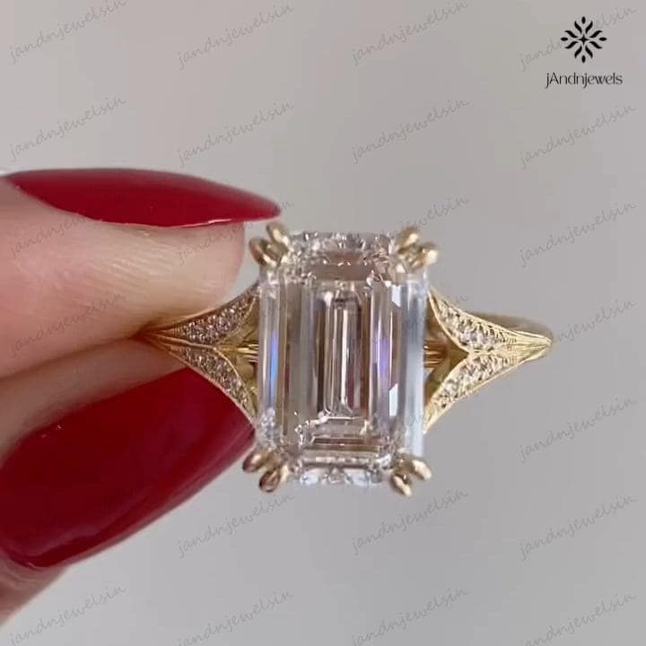4CT Emerald Cut Moissanite Engagement Ring Unique Diamond Ring Split Shank Ring 18K Solid Gold Ring Wedding Ring For Him Anniversary Gift