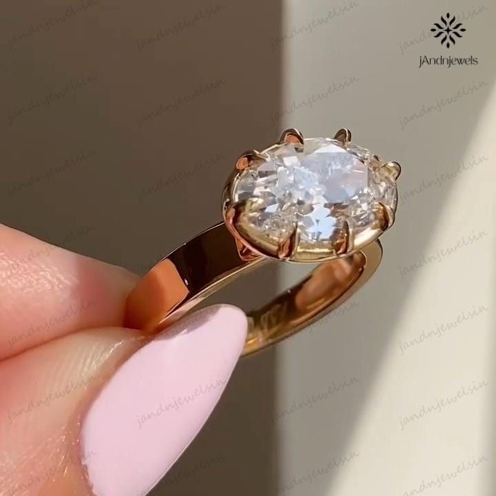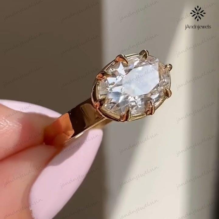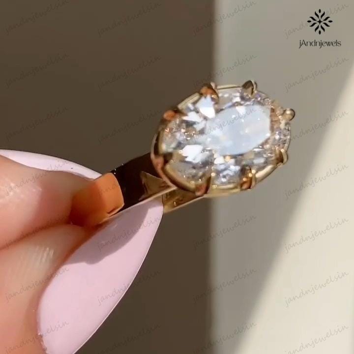 Experience timeless elegance with our 3CT Oval Cut Moissanite Engagement Ring, handcrafted in solid 14K gold. Featuring a sparkling moissanite center in a secure six-prong setting, this solitaire ring combines vintage charm with modern sophistication. Perfect as an engagement, bridal, or anniversary ring a luxurious and ethical alternative to a diamond that shines forever.