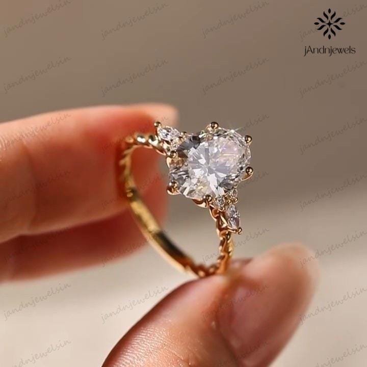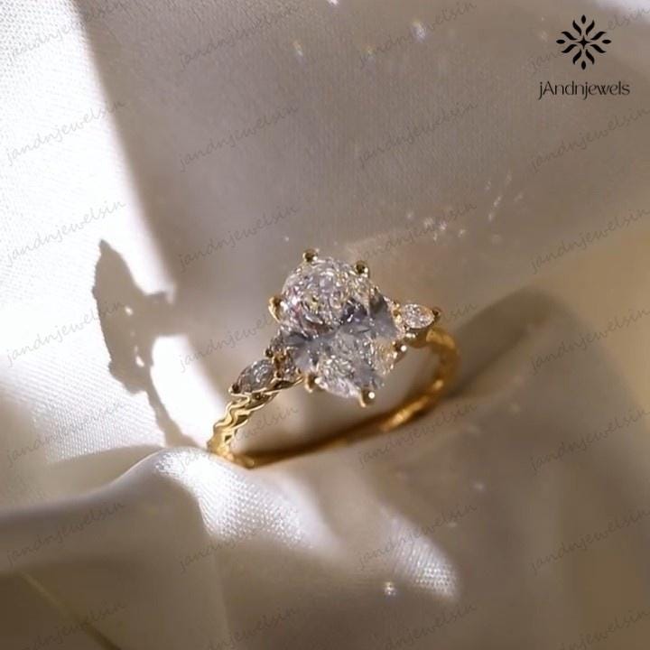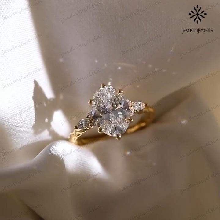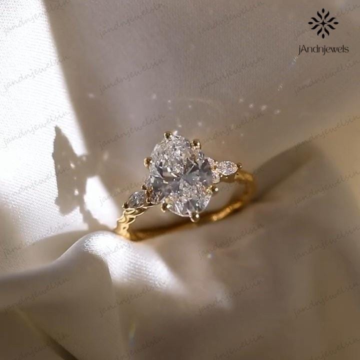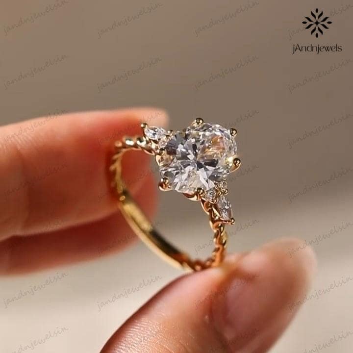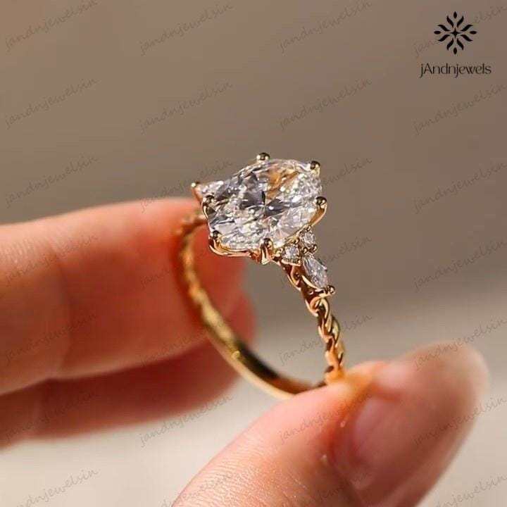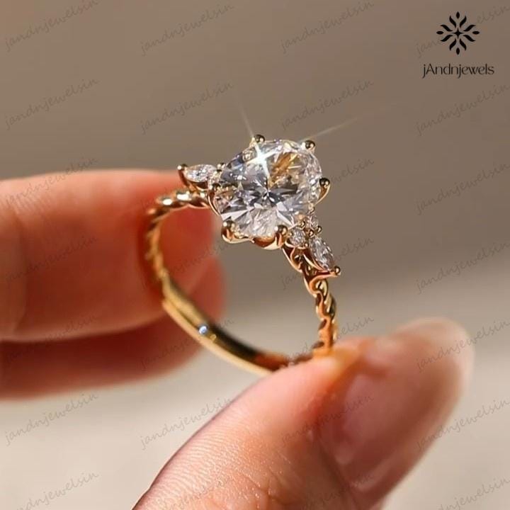 This 3CT Oval Cut Moissanite Engagement Ring features a stunning oval center stone set in 14K solid gold with a unique twisted rope band. The elegant marquise side stones add a timeless sparkle, creating a perfect blend of classic and modern design. Ideal for brides who love vintage-inspired beauty and sophisticated craftsmanship. A perfect engagement, wedding, or anniversary gift — handcrafted for brilliance, durability, and everlasting elegance.