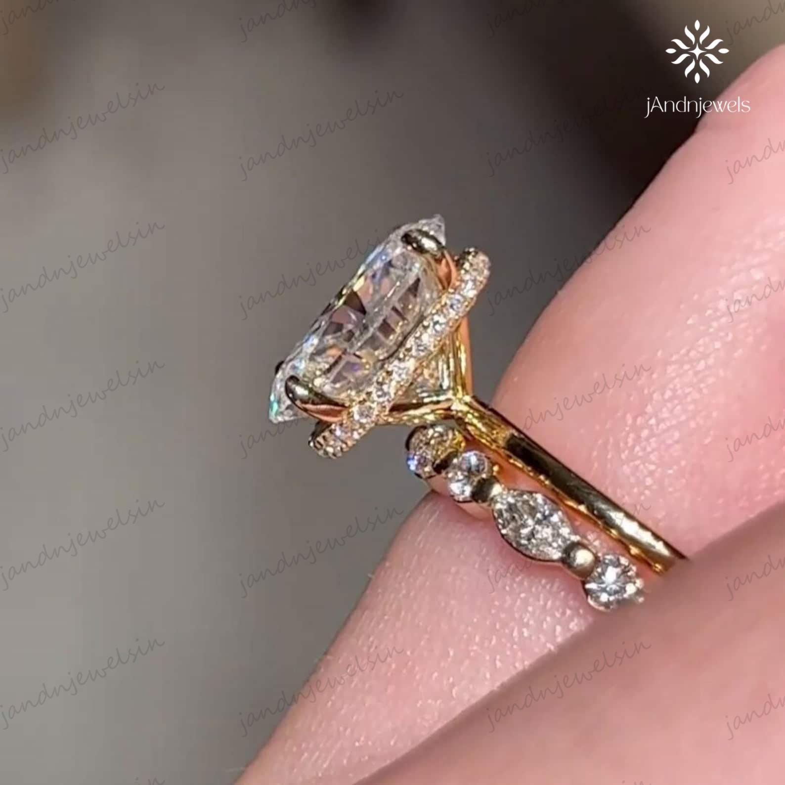 3CT Oval Cut Moissanite Engagement Ring Set, 14K Solid Gold Bridal Ring Set, Hidden Halo Wedding Ring Set With Round & Marquise Cut Band, 3ct moissanite ring, oval ring, oval engagement ring, wedding ring set, engagement ring set, 14k gold ring, hidden halo ring, promise ring, proposal ring, bridal ring set, anniversary gift, ring, oval diamond ring