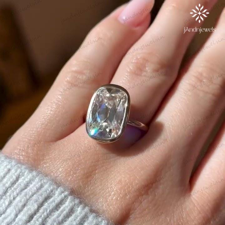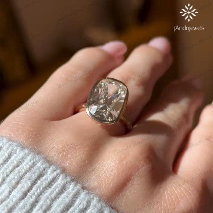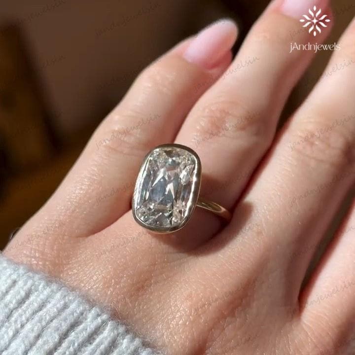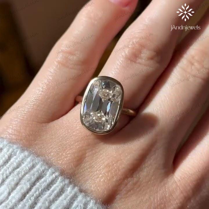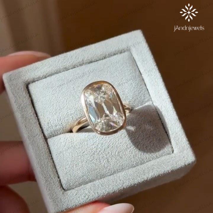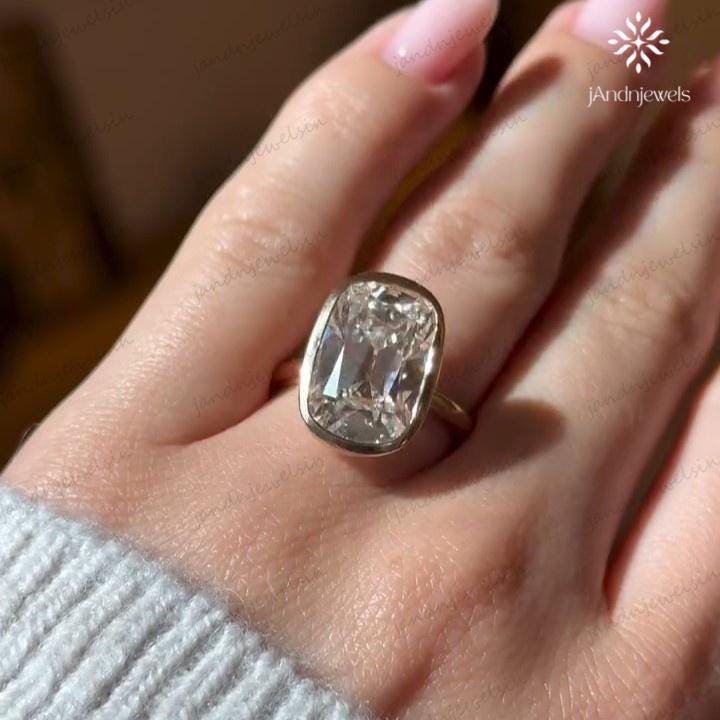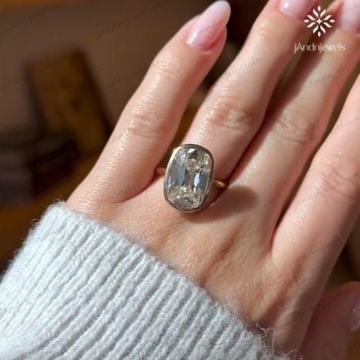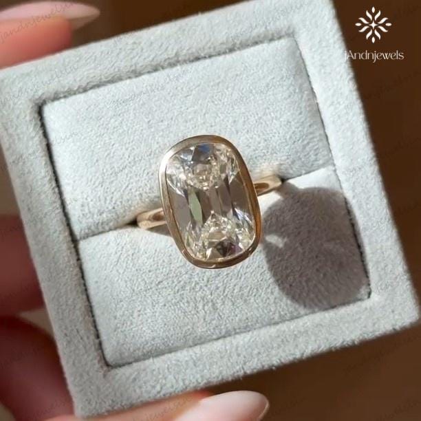 4 CT Old Mine Cushion Moissanite Engagement Ring Bezel Set Solitaire 14K Solid Gold Ring Wedding Promise Ring Birthday Gift for Women