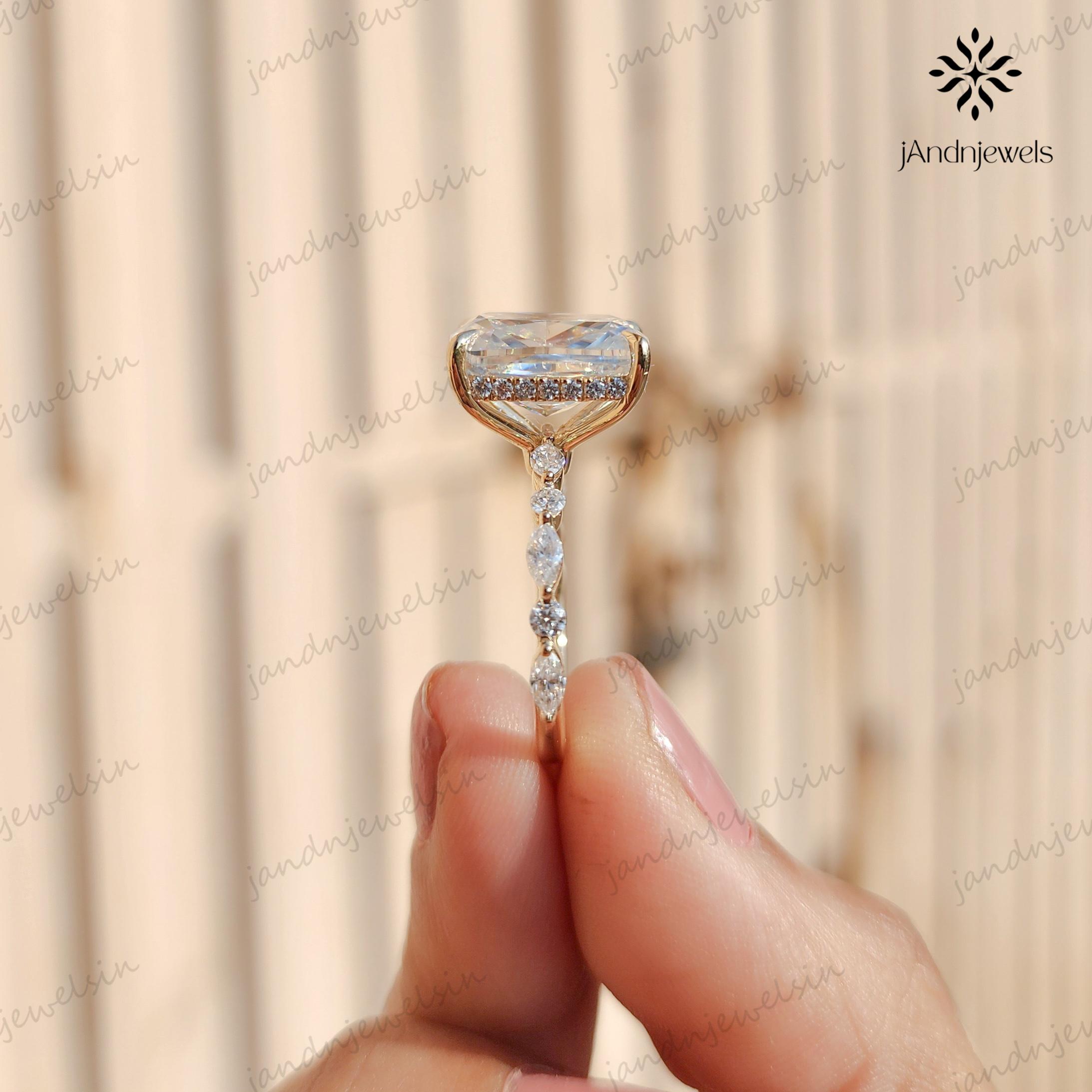 4CT Cushion Cut Moissanite Diamond Engagement Ring Hidden halo Ring Marquise And Round Diamond Wedding Band 14K Gold Promise Ring for Her, 3ct moissanite ring, cushion ring, solitaire ring, moissanite ring, wedding ring, engagement ring, hidden halo ring, 14k gold ring, gold ring, diamond ring, promise ring, rings, gift for mom