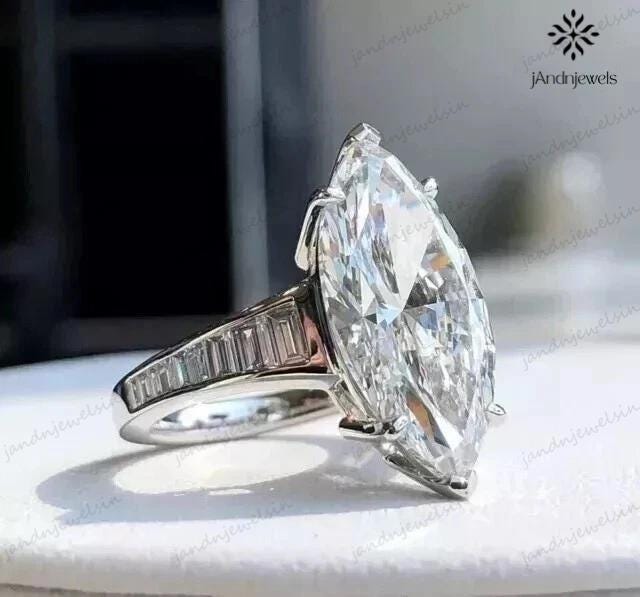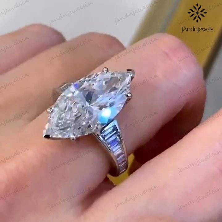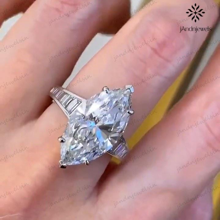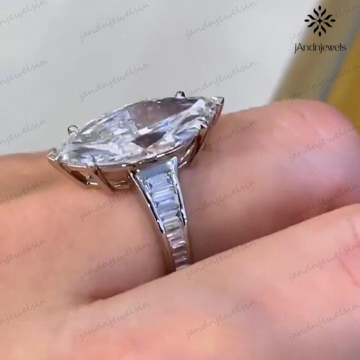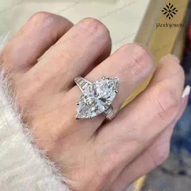 4 CT Marquise Cut Moissanite Engagement Ring 14K White Gold Wedding Ring Channel Set Baguette Ring Anniversary Ring For Women Promise Ring