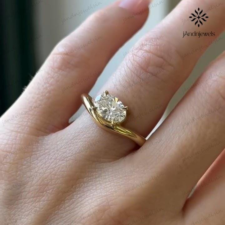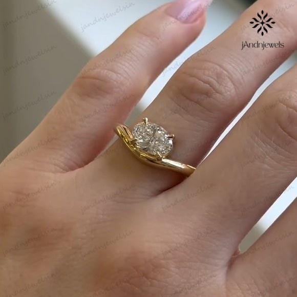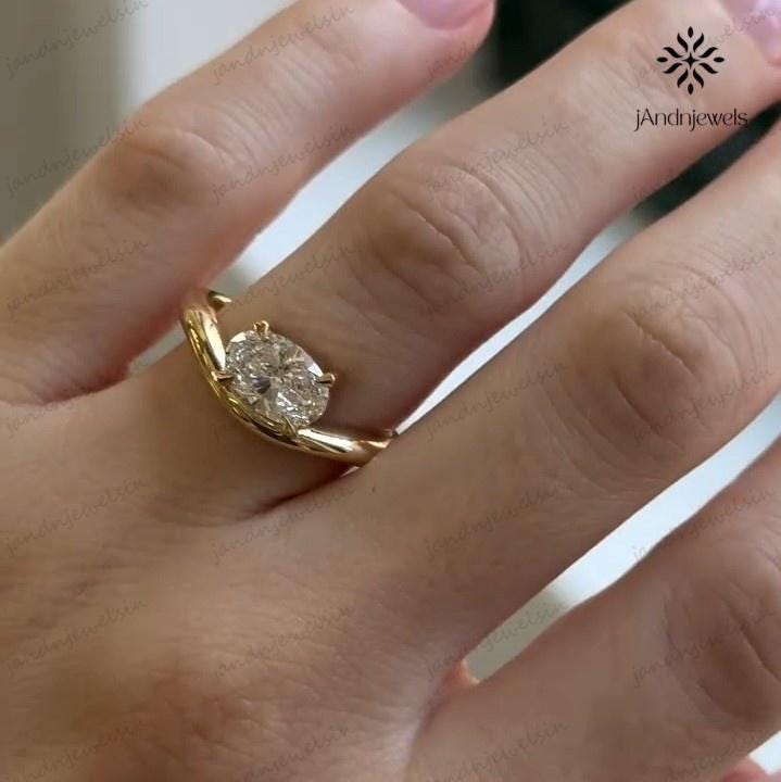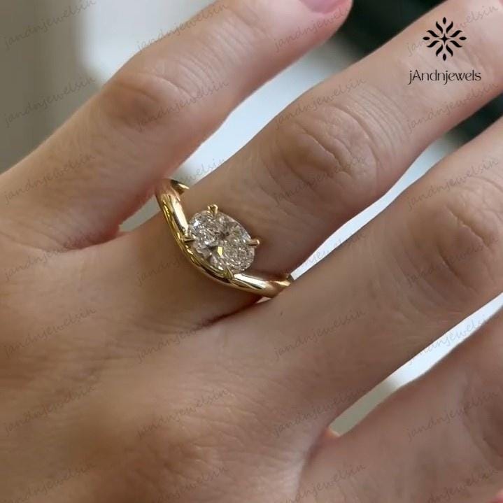 Pinky Finger Ring, East West Set 1.25 CT Oval Cut Moissanite Engagement Ring, Solitaire Moissanite Ring, East-West Ring, Pinky Promise Ring