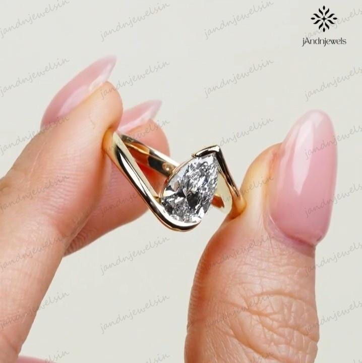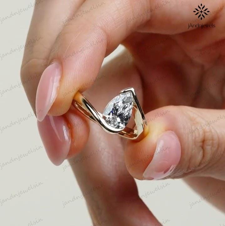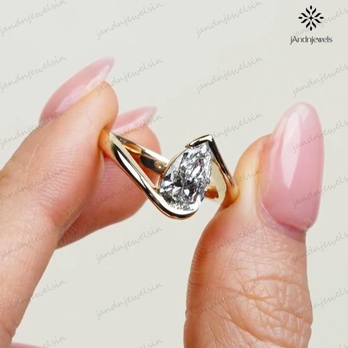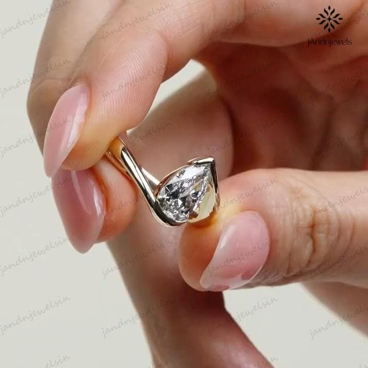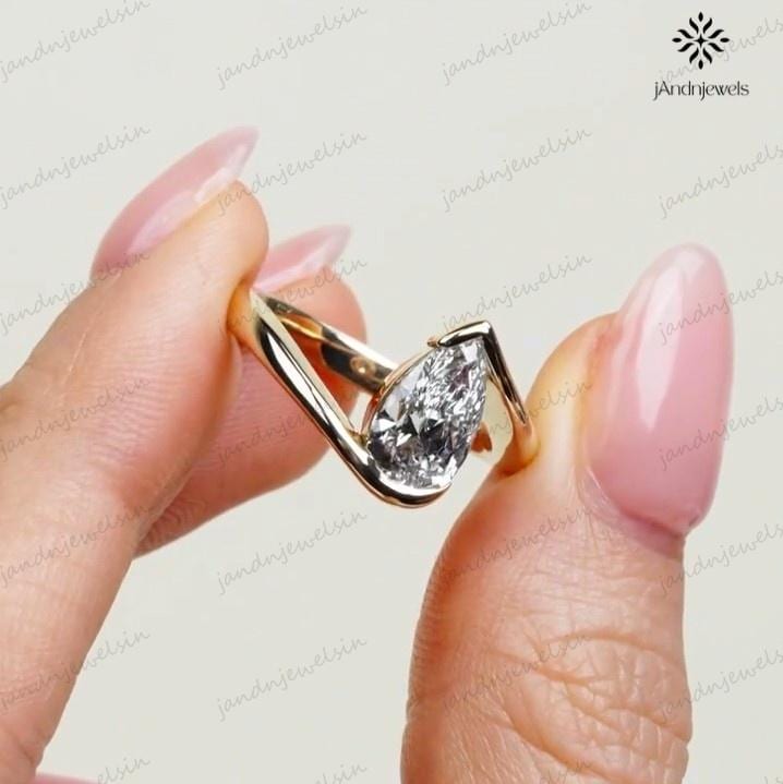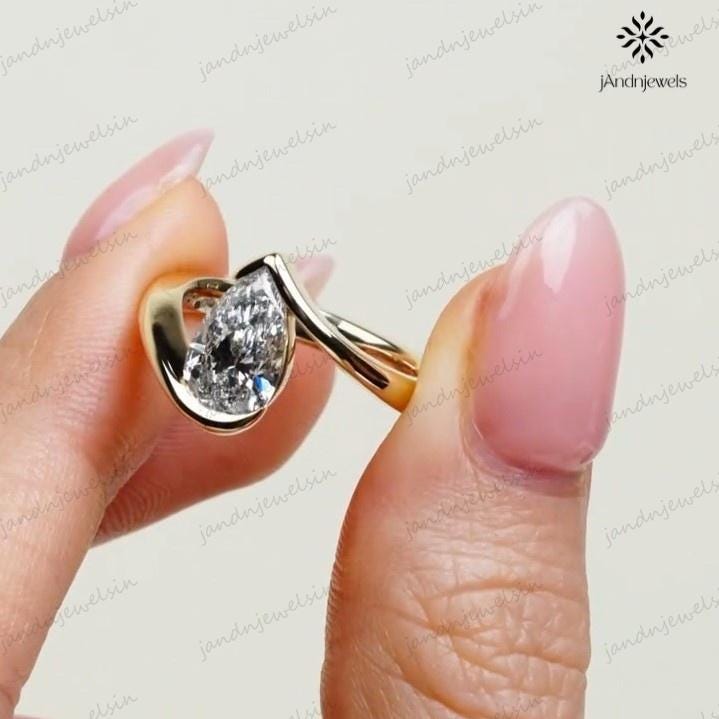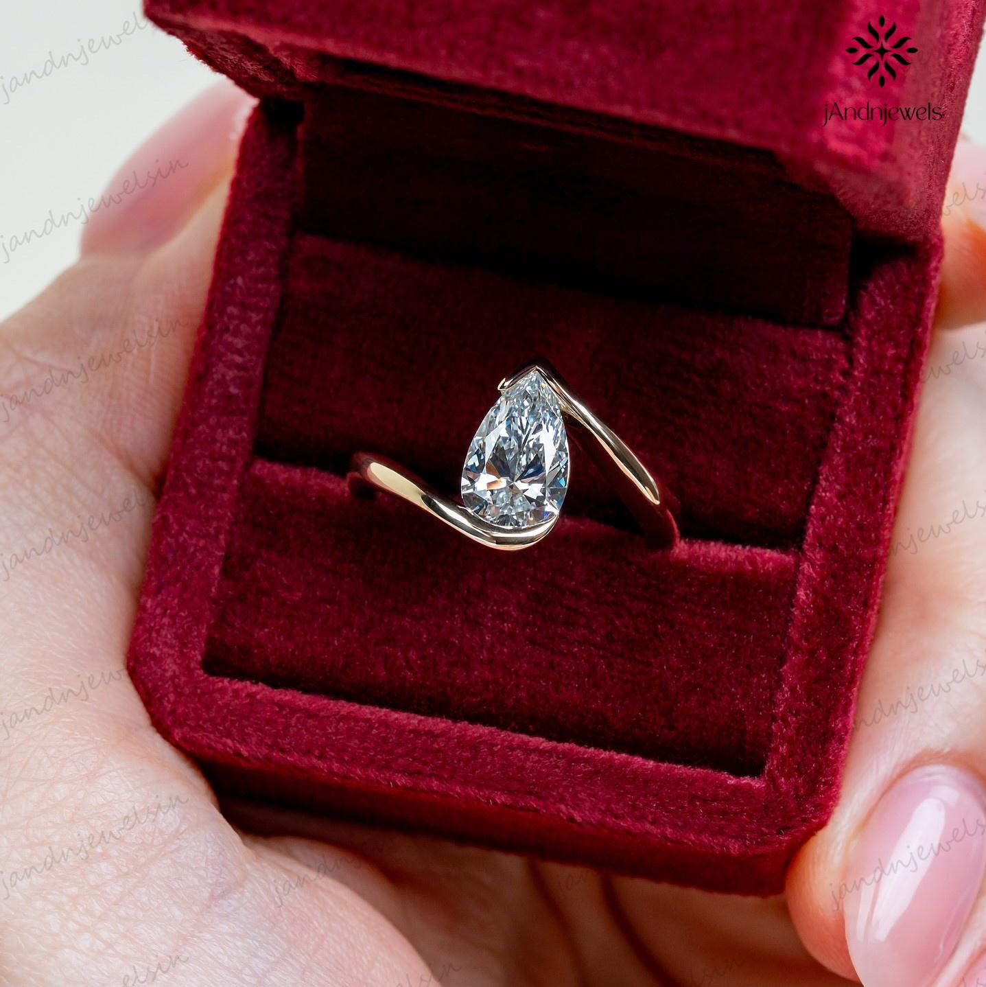 2CT Pear Cut Moissanite Engagement Ring Bezel Set Solitaire Ring 14K Yellow Gold Bypass Bridal Ring Unique Wedding Ring Anniversary Gifts