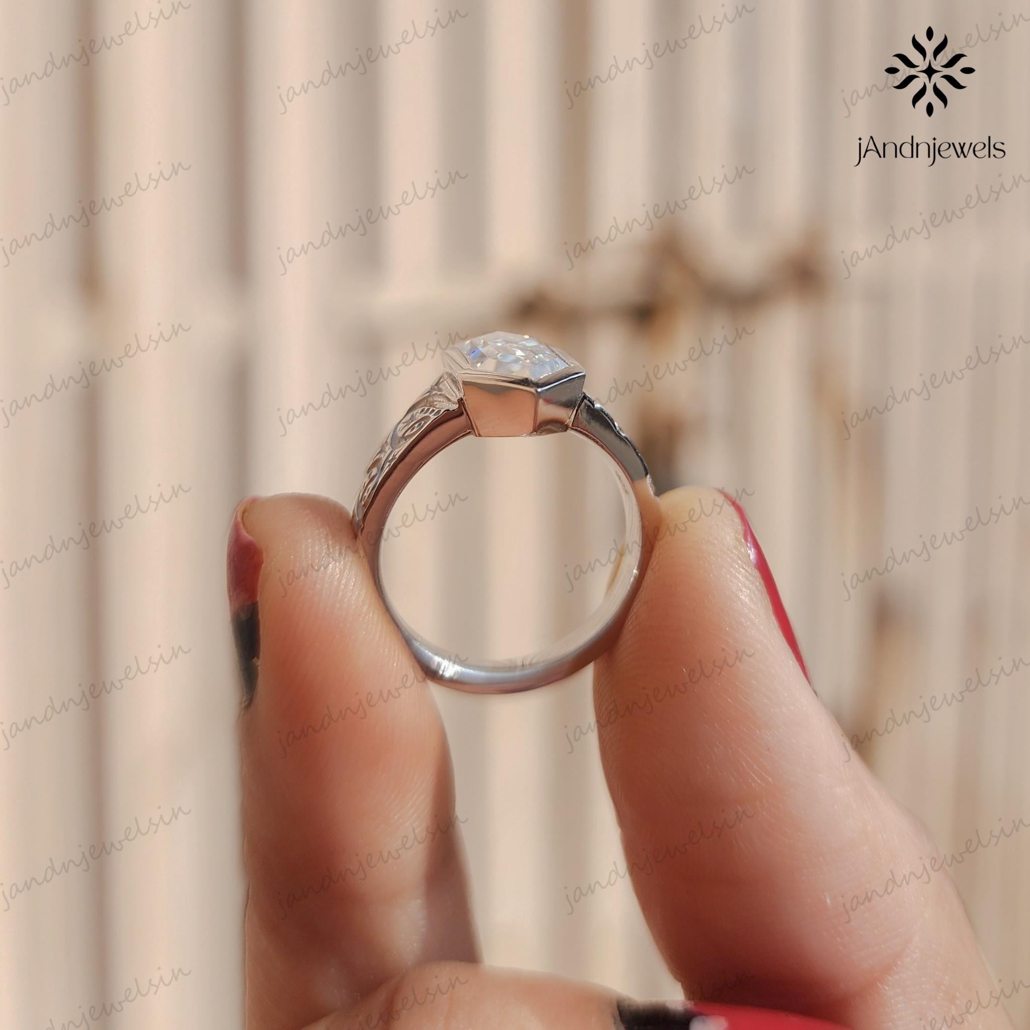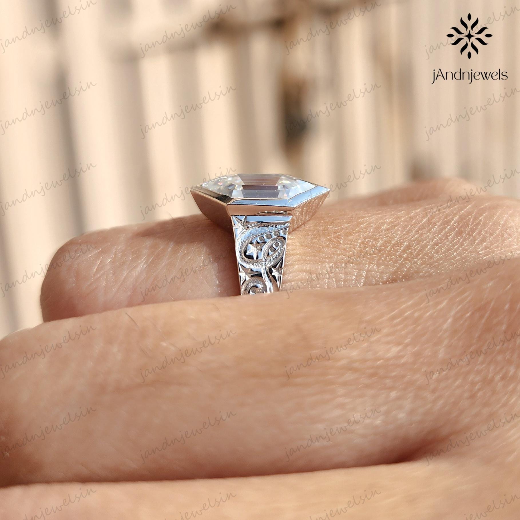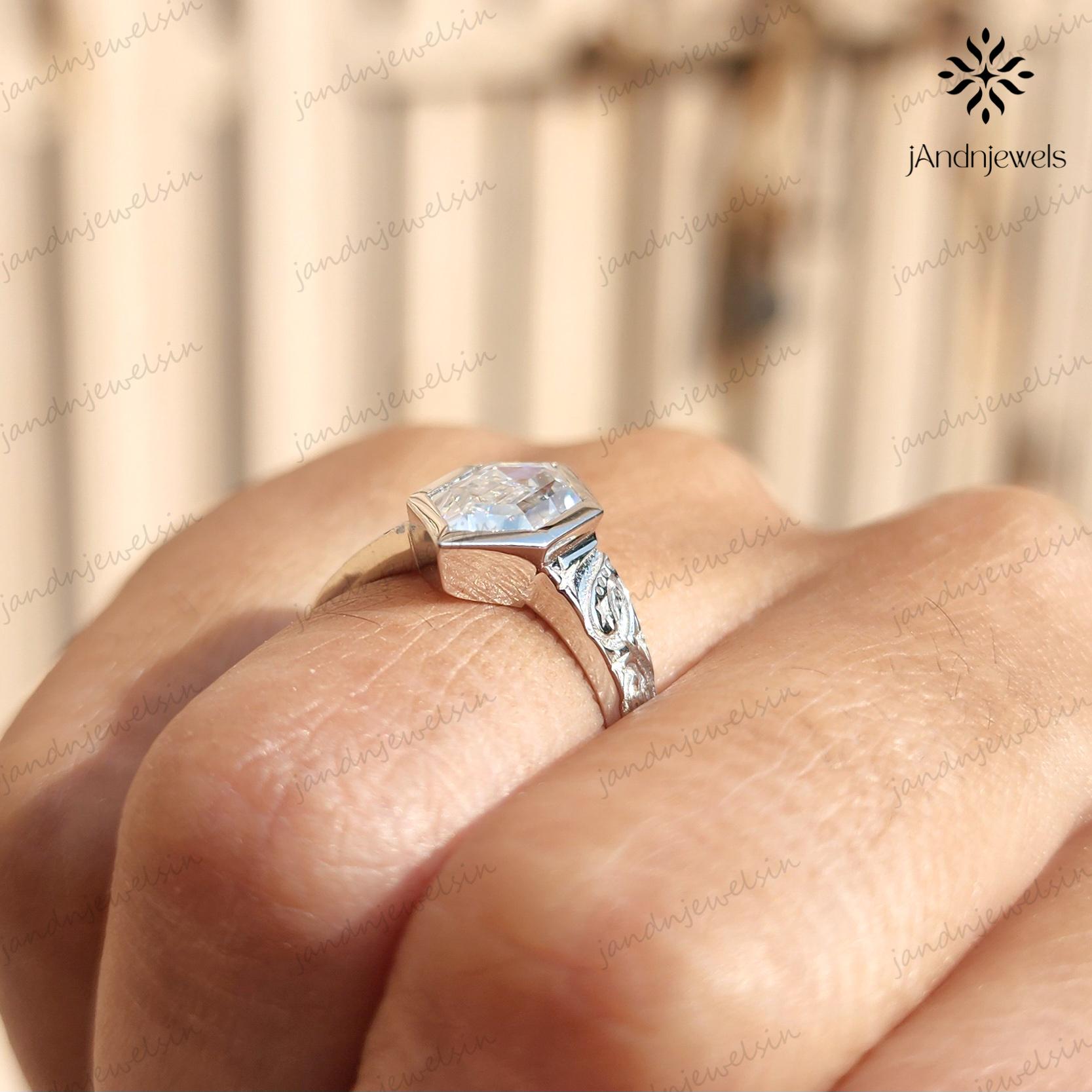 2.5CT Hexagon Cut Moissanite Engagement Ring 14K Yellow Gold Vintage Engraved Bezel Setting Art Deco Geometric Bridal Ring for Women