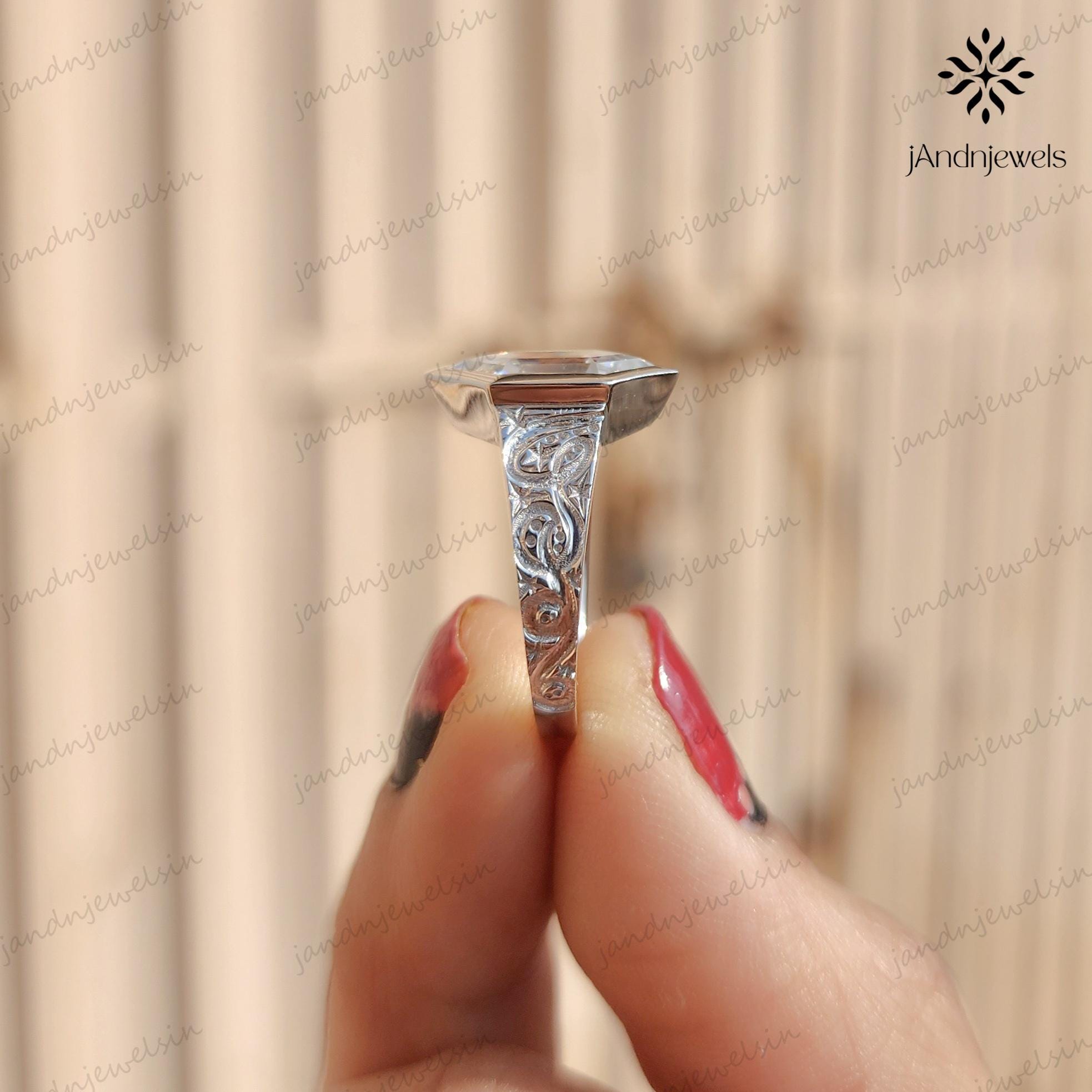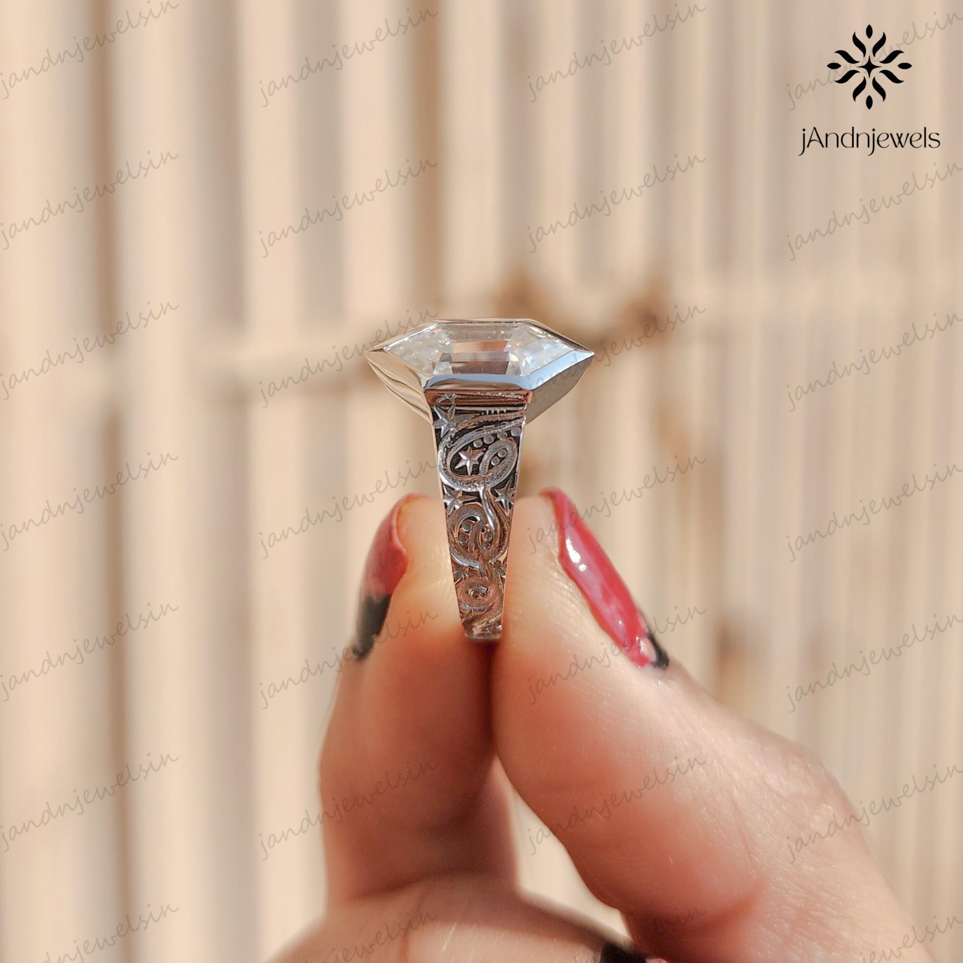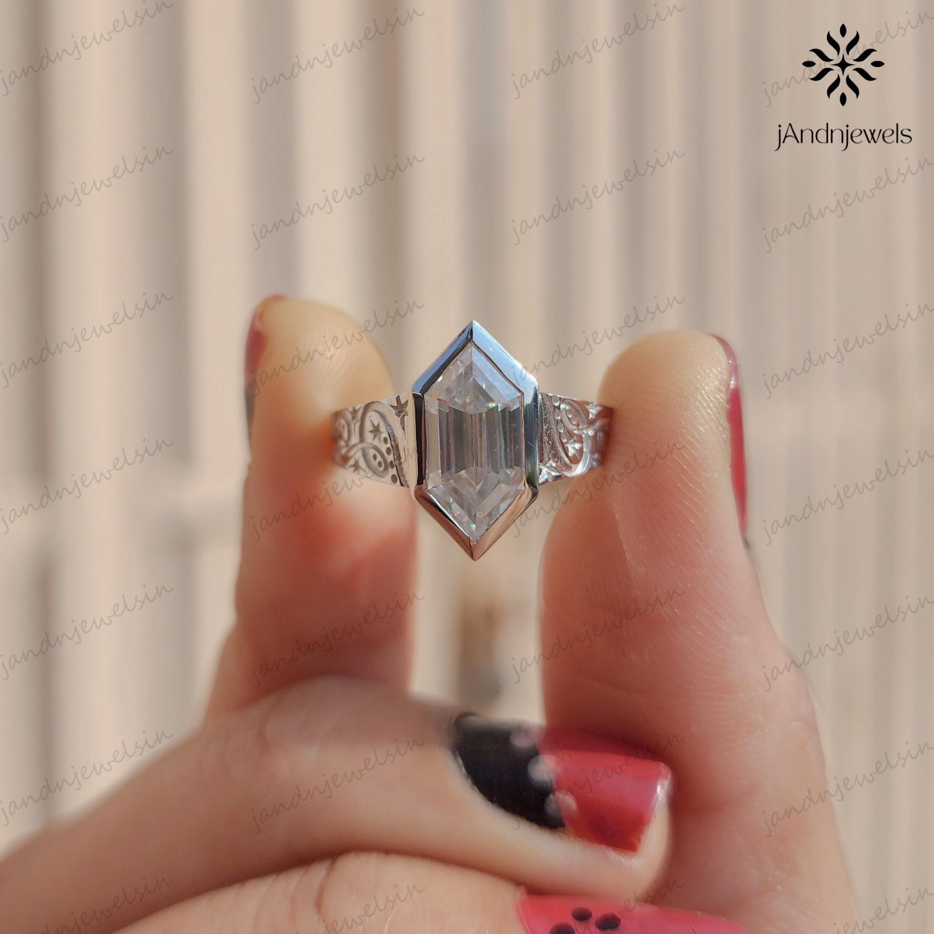 2.5CT Hexagon Cut Moissanite Engagement Ring 14K Yellow Gold Vintage Engraved Bezel Setting Art Deco Geometric Bridal Ring for Women