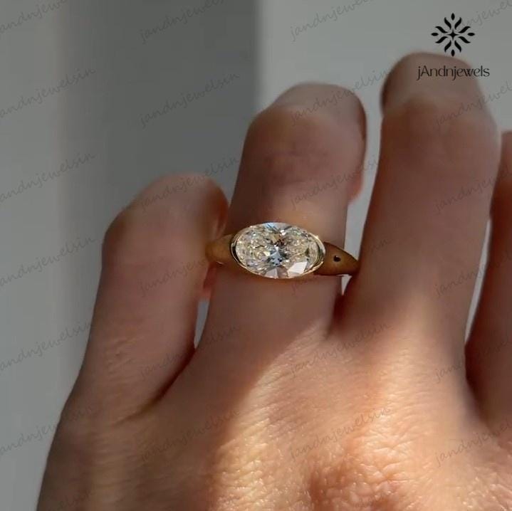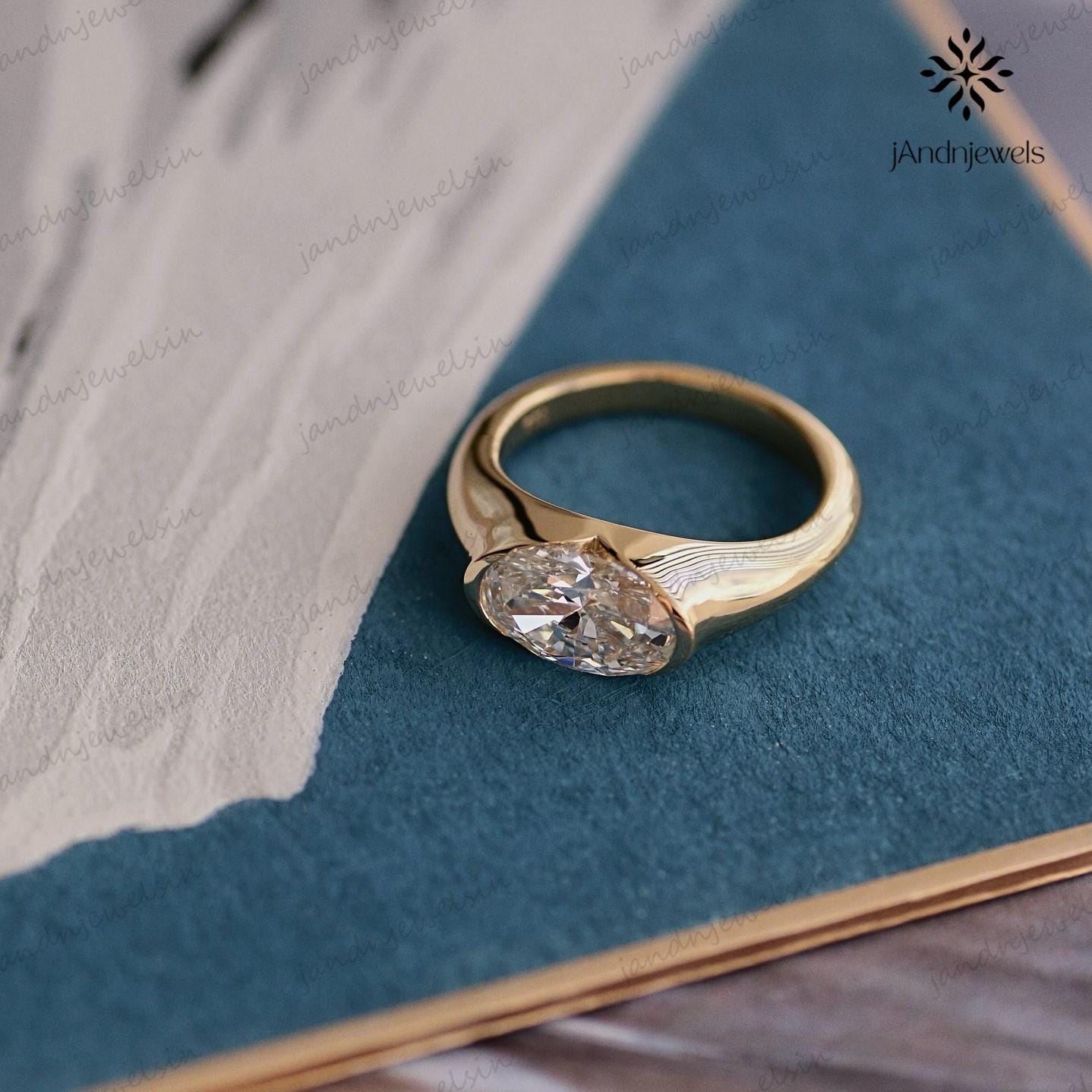 2CT Oval Moissanite Engagement Ring Bezel Set Bypass Solitaire Ring 14K Solid Gold Wedding Ring Anniversary Gift for Her Diamond Ring