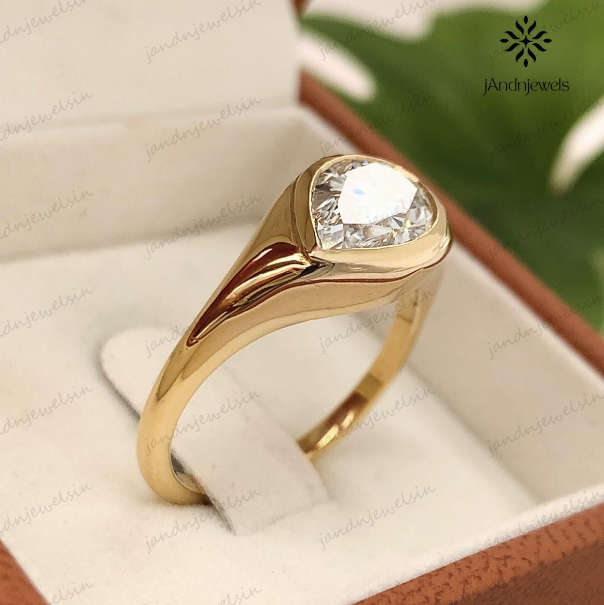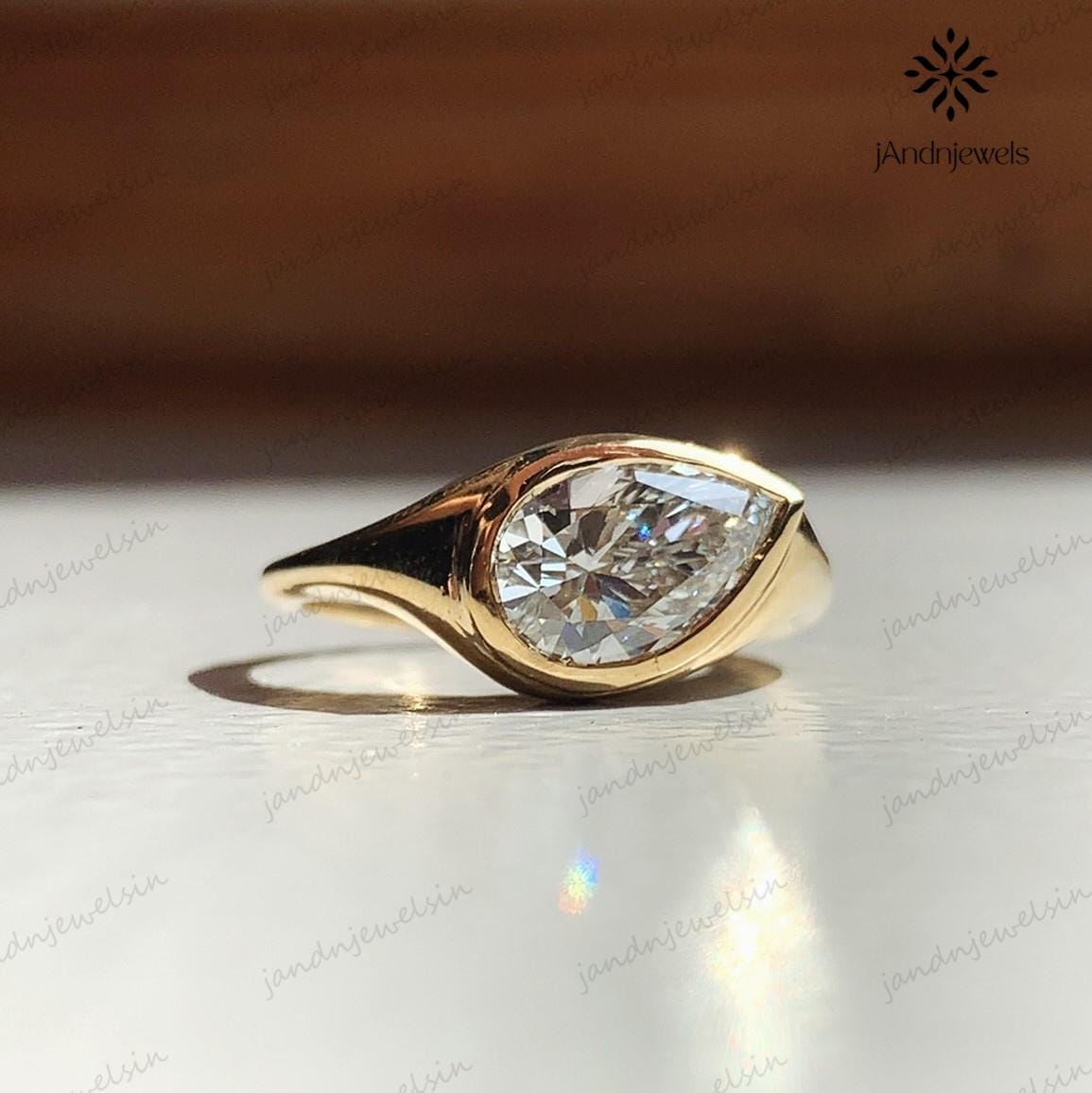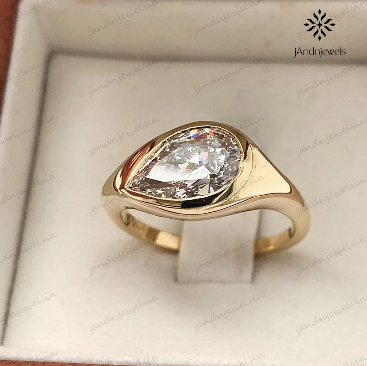 2 CT Pear Cut Moissanite Engagement Ring Bezel Set 14K Gold Pear Diamond Ring Unique Tear Drop Wedding Ring Pear Solitaire Ring for Her