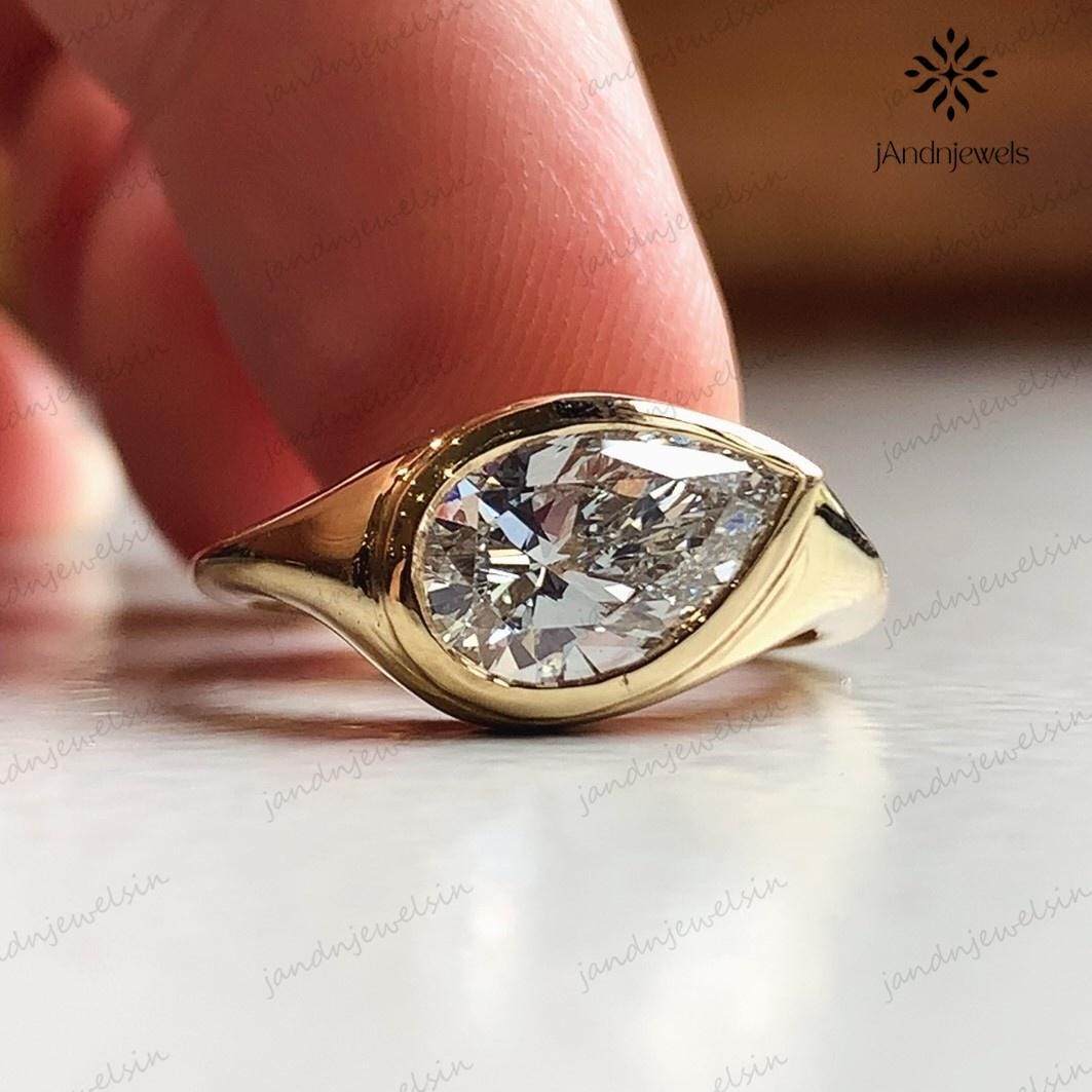 2CT Pear Cut Moissanite Bezel Set Ring 14K Gold Solitaire Engagement Ring Minimalist Wedding Ring Vintage Inspired Unique Anniversary Gift, pear ring, pear moissanite ring, pear engagement ring, ring, engagement ring, gold ring, silver ring, promise ring, wedding ring, bezel set ring, bezel ring, personalized gift, gift for her