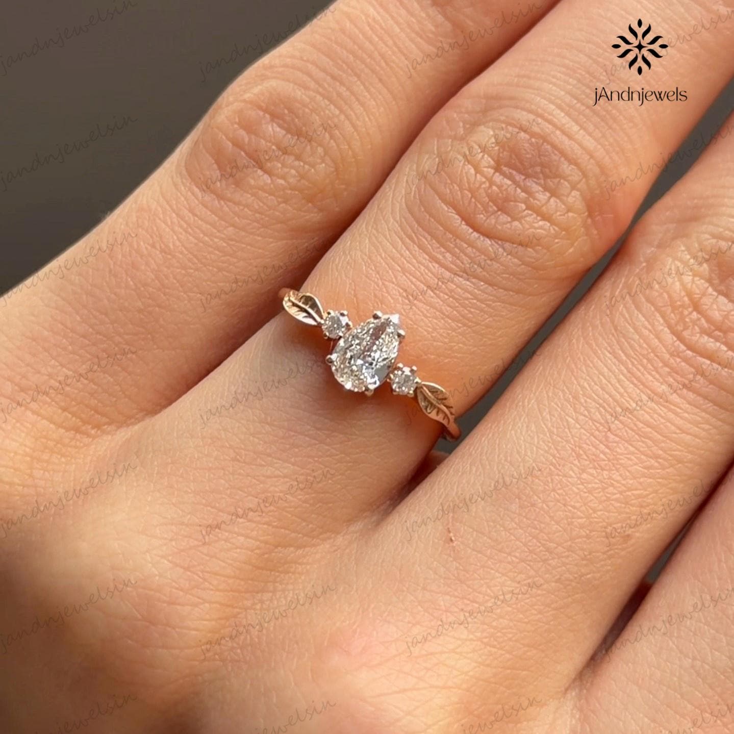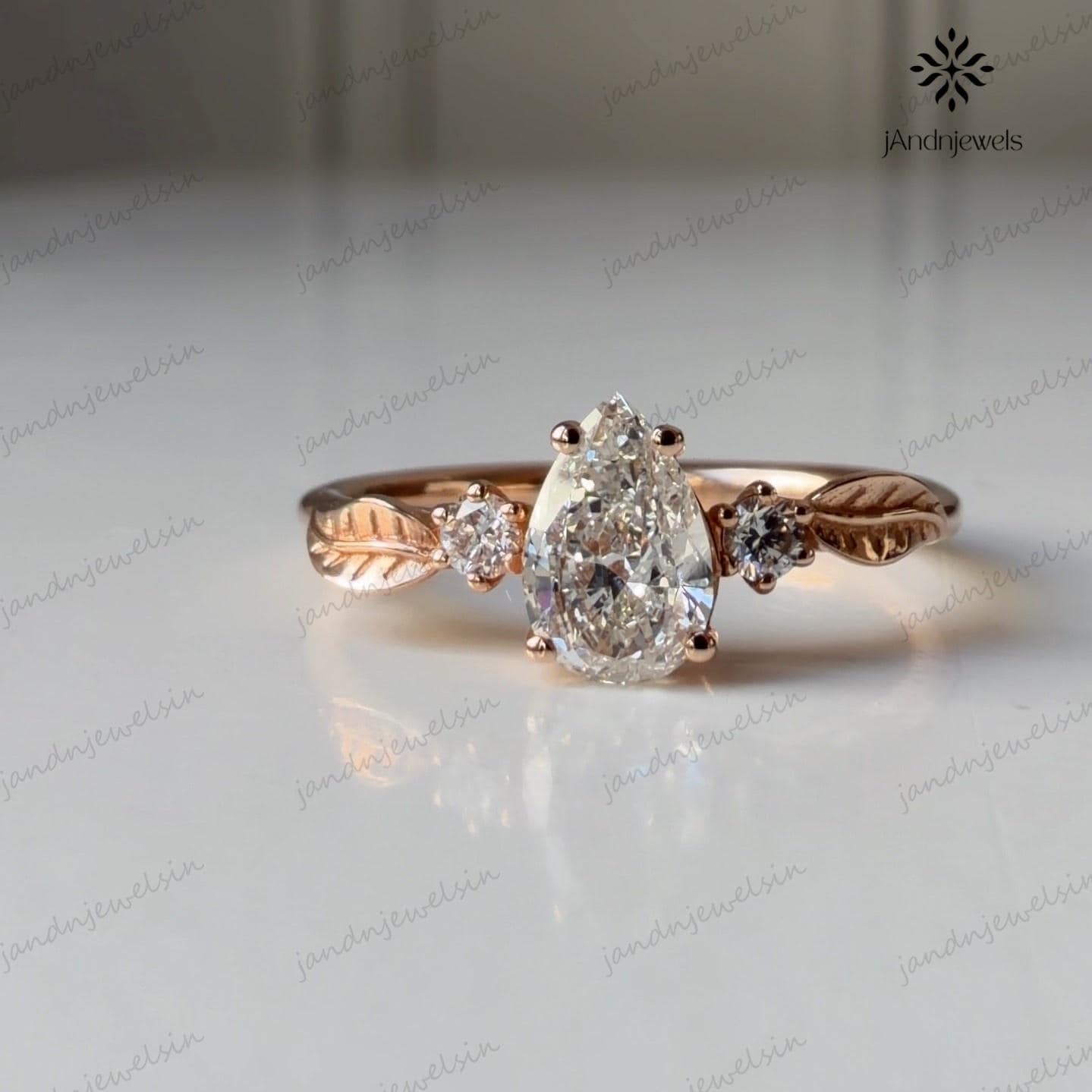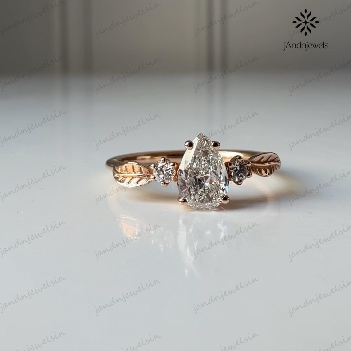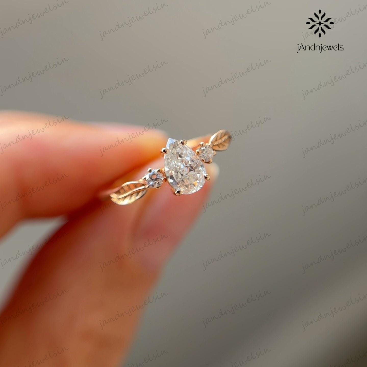 2CT Pear Cut Moissanite Engagement Ring Nature Inspired Vintage Ring 14K Solid Gold Ring Solitaire Ring Wedding Ring Anniversary Gift, pear ring, pear cut ring, moissanite ring, 2ct moissanite ring, wedding ring, engagement ring, 14K gold ring, three stone ring, nature inspired ring, diamond ring, anniversary ring, promise ring, birthday gift