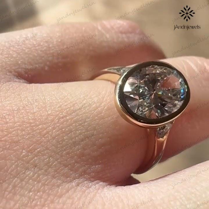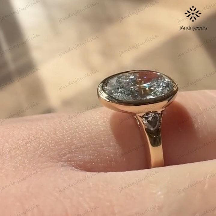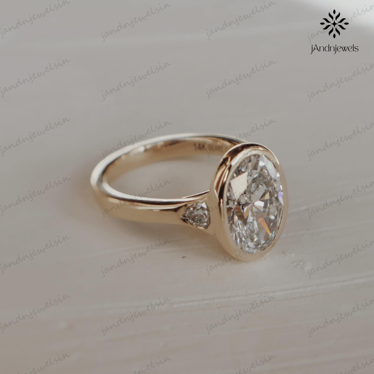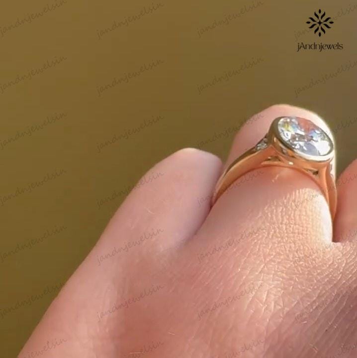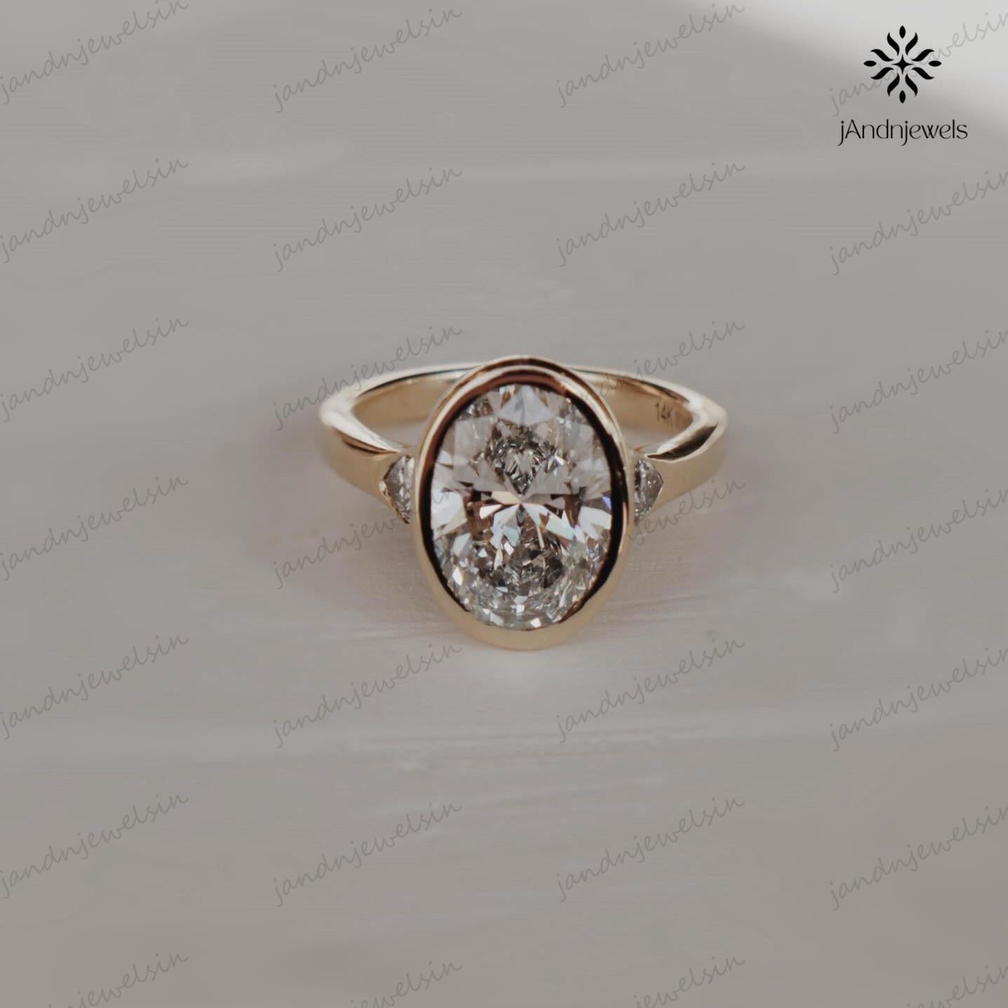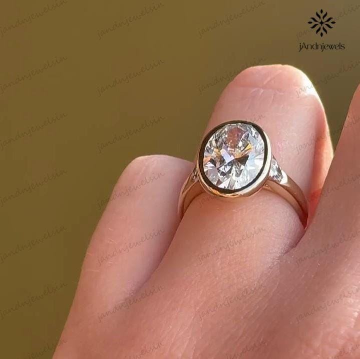 3CT Oval Moissanite Engagement Ring Bezel Set Three Stone Diamond Ring 14K Solid Gold Wedding Ring Unique Oval Bridal Proposal Ring For Her