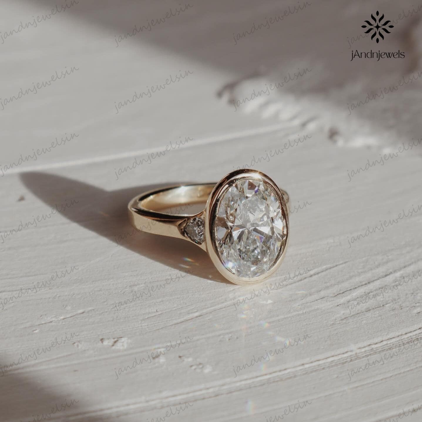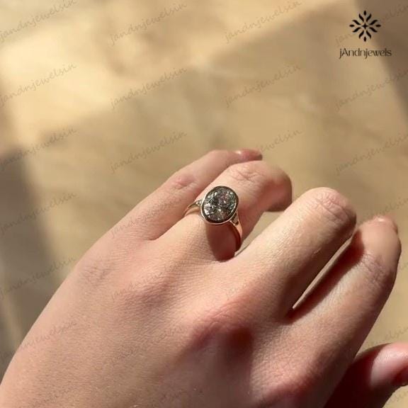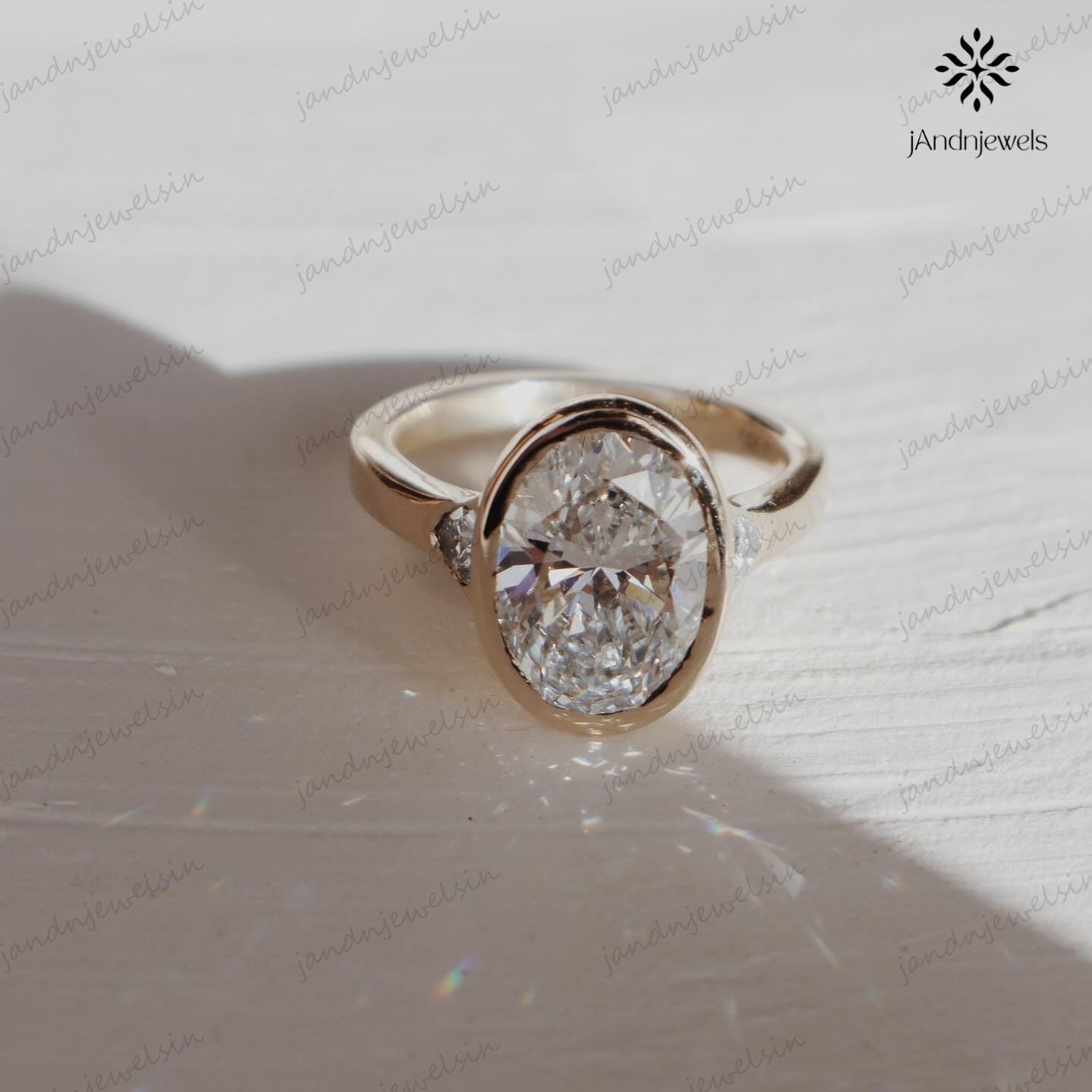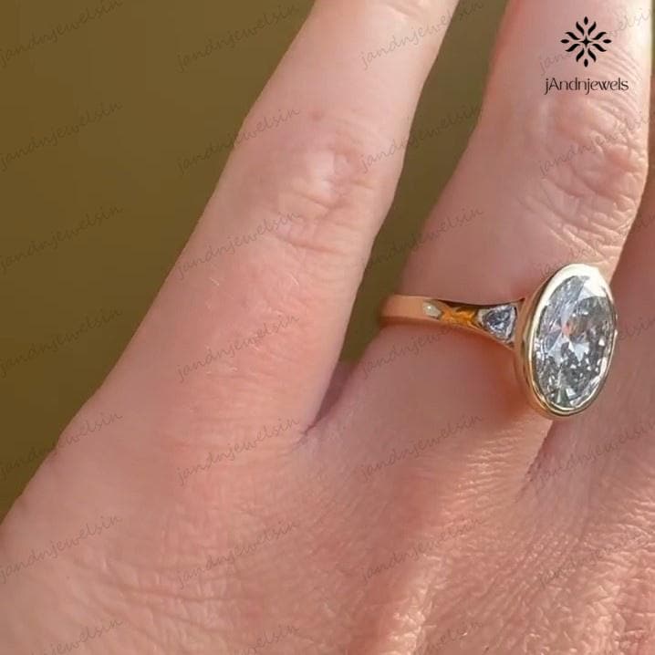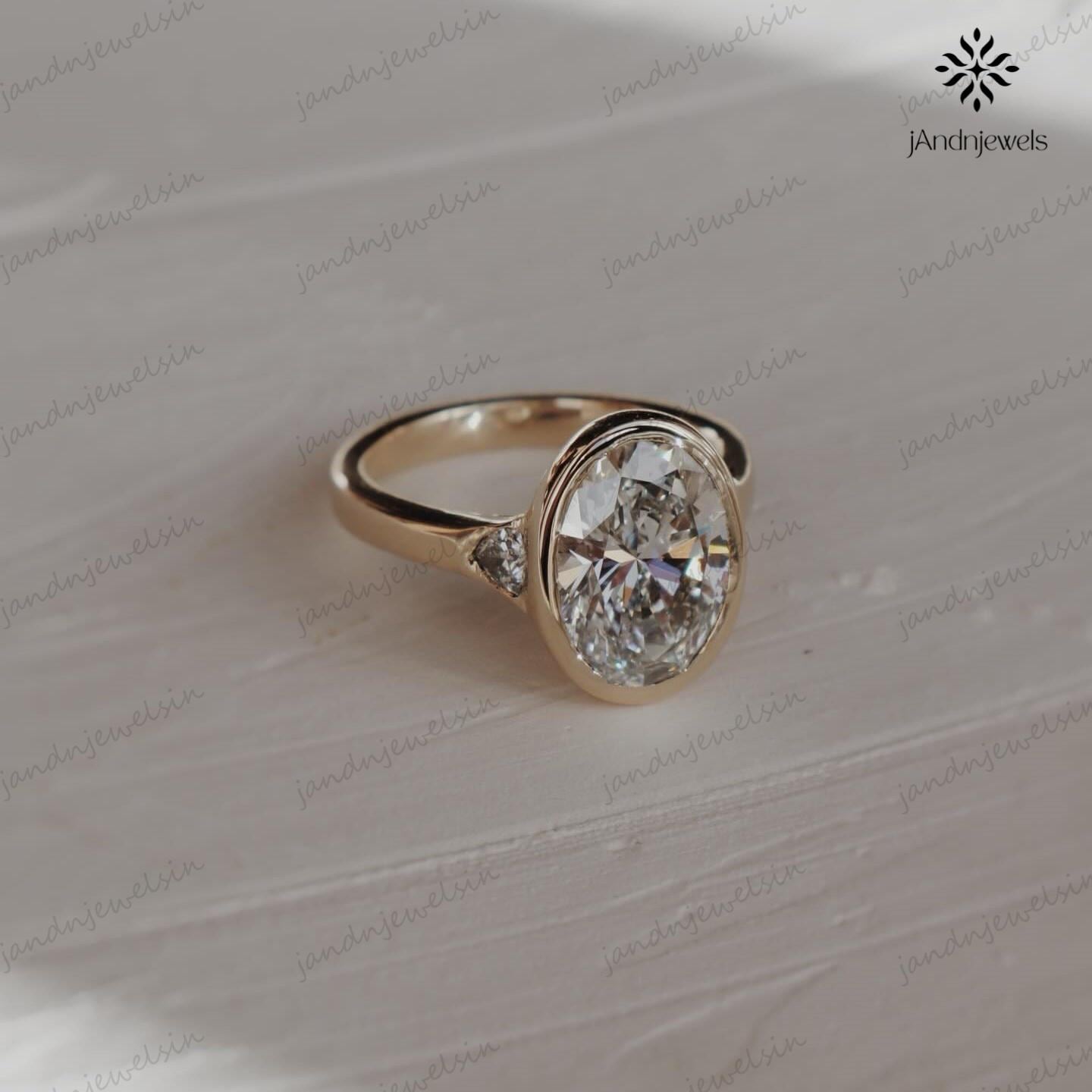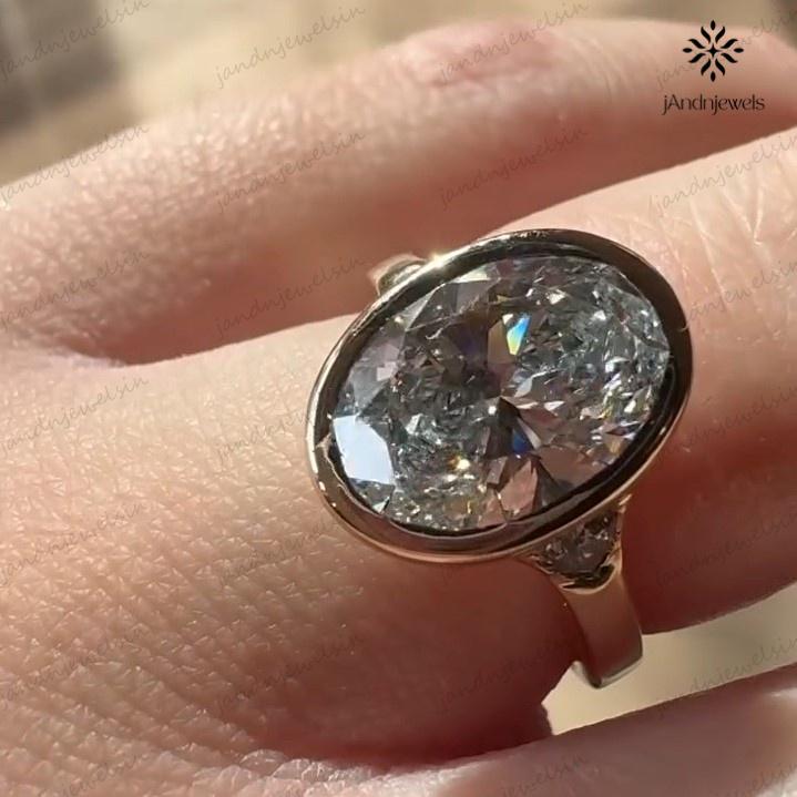 3CT Oval Moissanite Engagement Ring Bezel Set Three Stone Diamond Ring 14K Solid Gold Wedding Ring Unique Oval Bridal Proposal Ring For Her