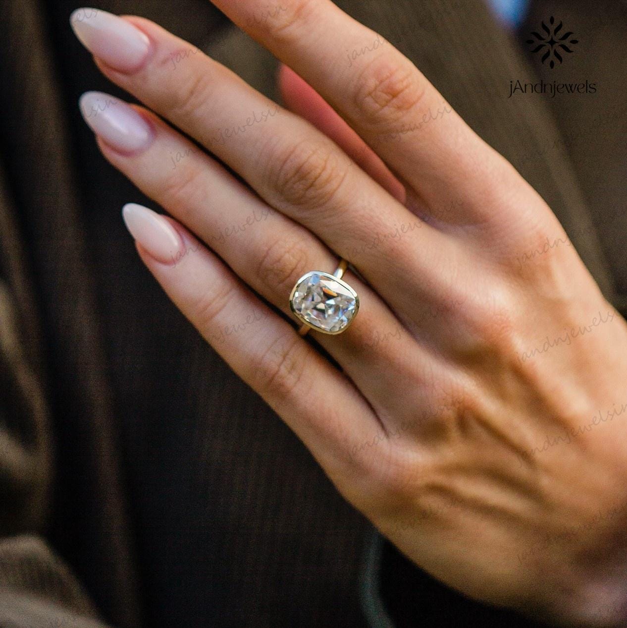 4ct Old Main Elongated Cushion Cut Moissanite Ring Bezel Set Solitaire Diamond Ring 14K Solid Gold Ring Anniversary Gift For Women, cushion, elongated cushion, engagement ring, ring, gold ring, wedding ring, moissanite ring, diamond ring, minimalist ring, handmade ring, bezel set ring, bezel ring, unique ring