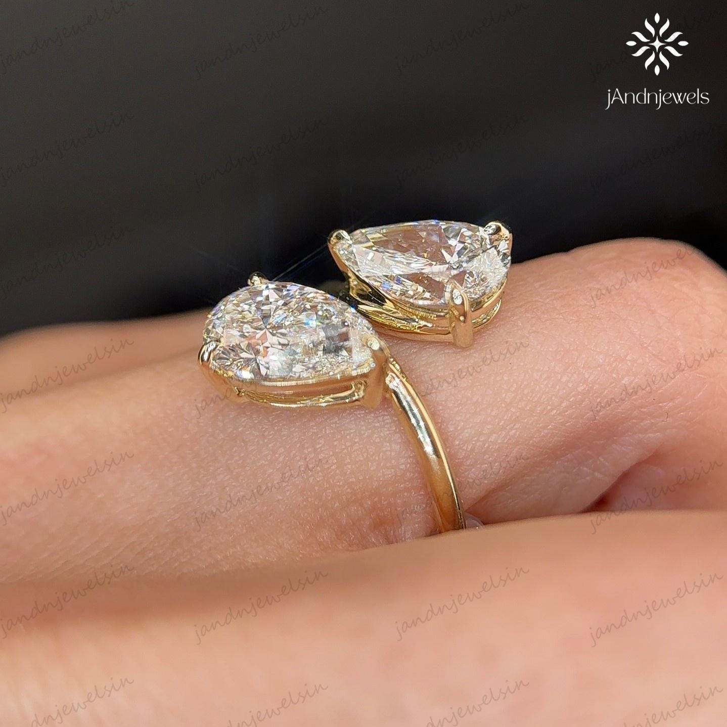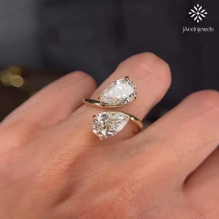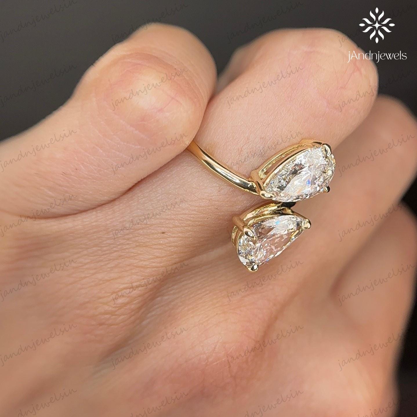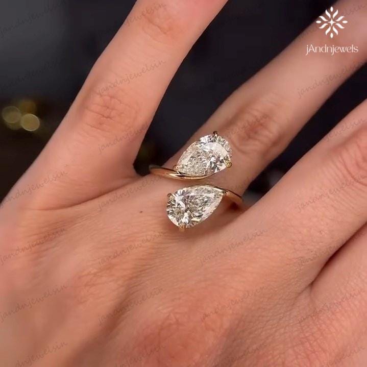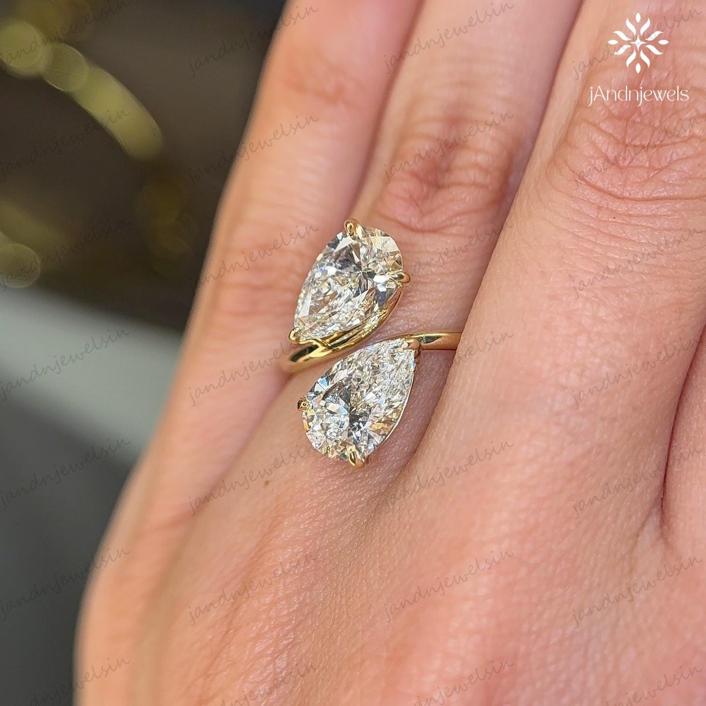 Double Pear Cut Lab Grown Diamond Ring 14K Gold Toi et Moi Bypass Ring Unique Two Stone Engagement Ring Anniversary Ring for Him