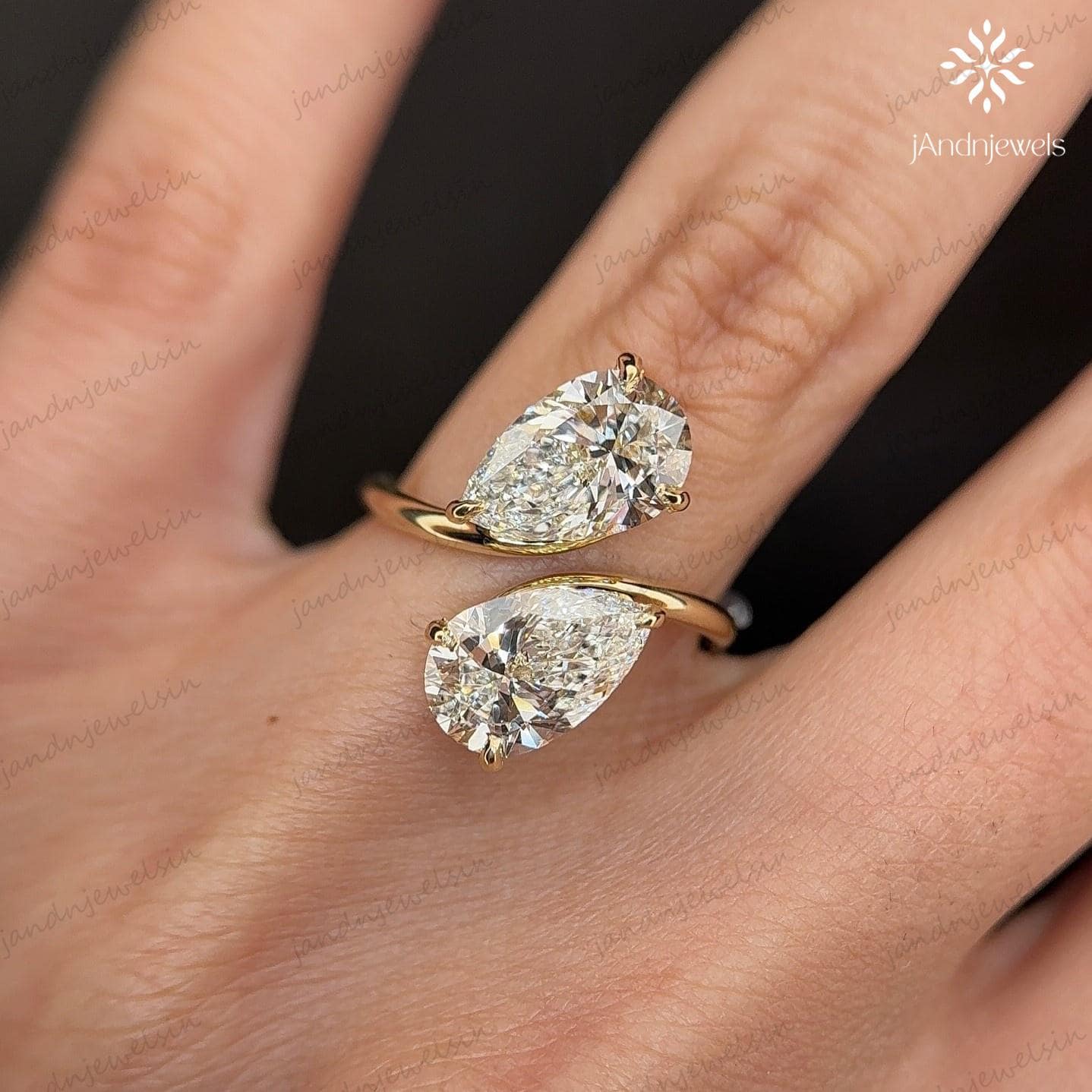 Toi Et Moi Ring Pear Cut Moissanite Engagement Ring Double Pear Ring 14K Gold Two Stone Ring Unique Bypass Wedding Ring Anniversary Gifts, toi et moi ring, pear ring, moissanite ring, two stone ring, engagement ring, wedding ring, bypass ring, 14k gold ring, promise ring, bridal ring, anniversary gift, unique ring, gifts for her