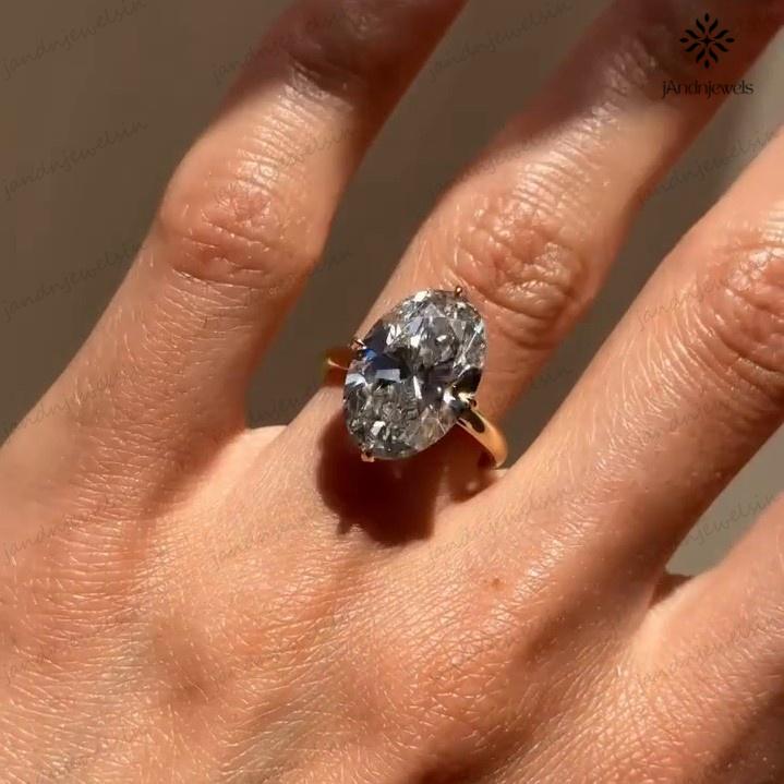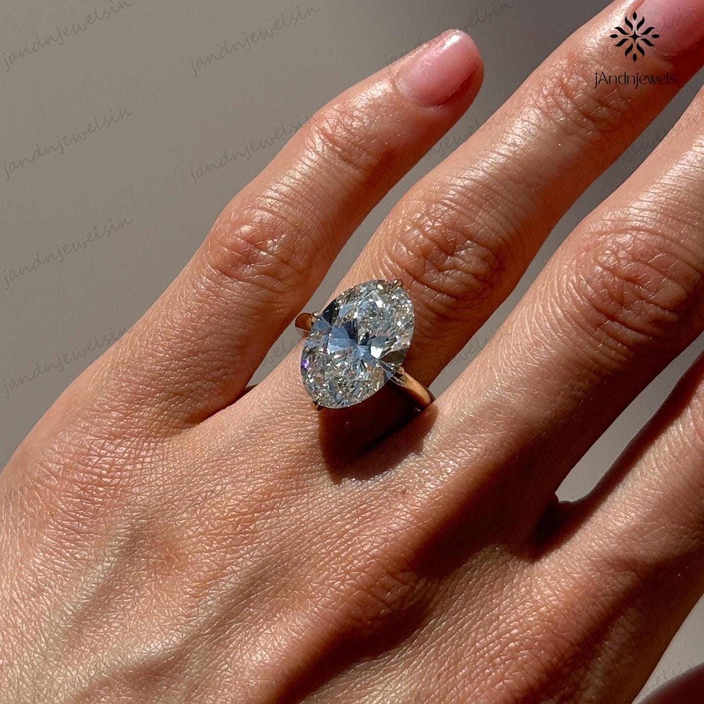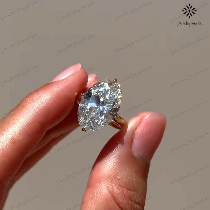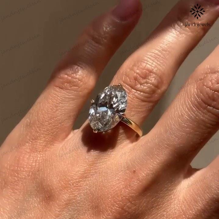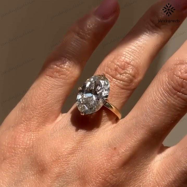 4 CT Oval Moissanite Engagement Ring 14K Yellow Gold Oval Solitaire Ring Large Diamond Ring Wedding Ring for Her Anniversary Gift For Women