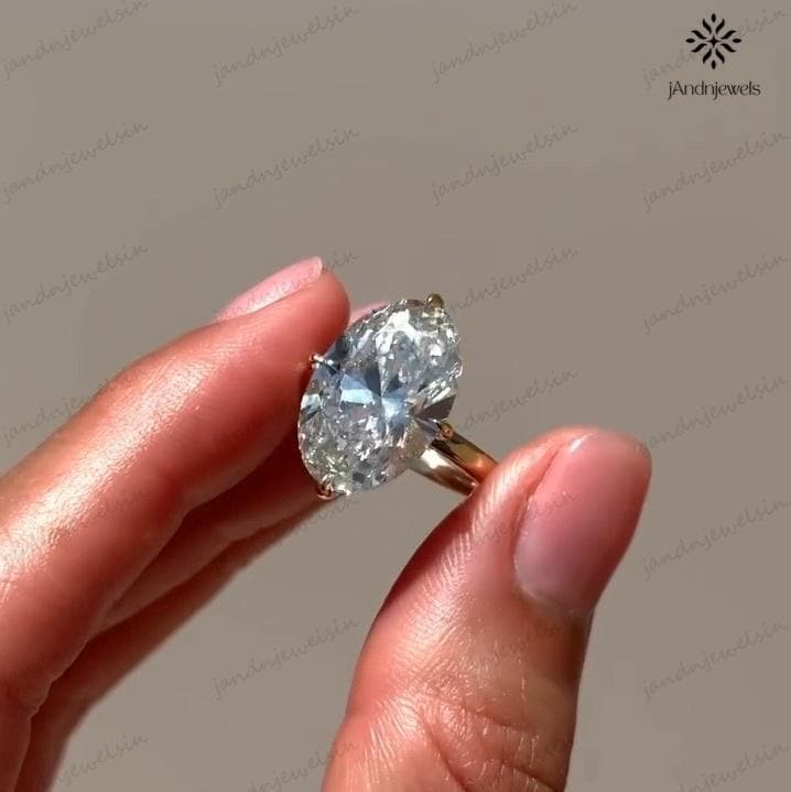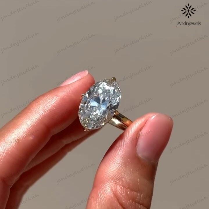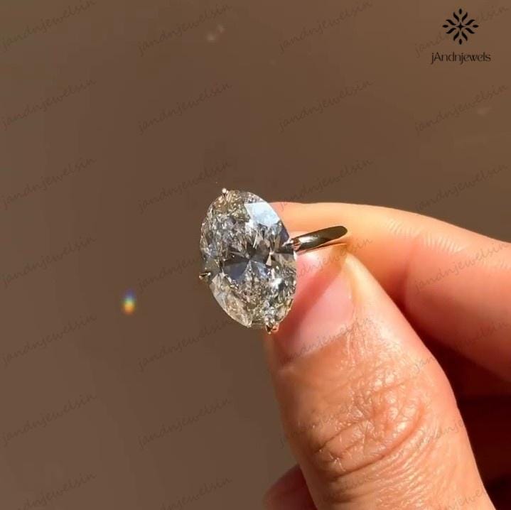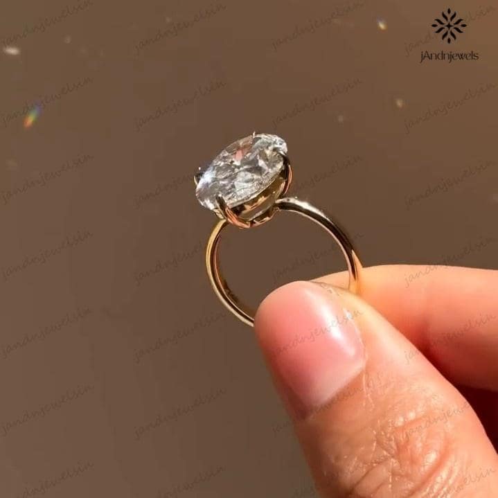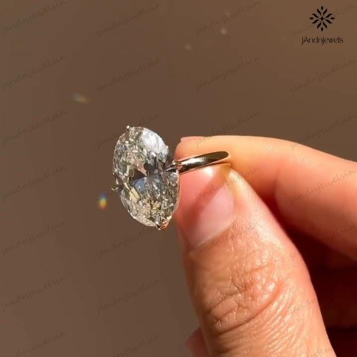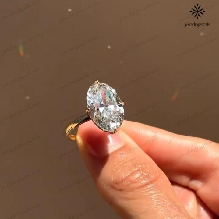 4 CT Oval Moissanite Engagement Ring 14K Yellow Gold Oval Solitaire Ring Large Diamond Ring Wedding Ring for Her Anniversary Gift For Women