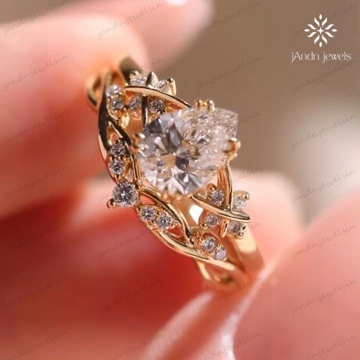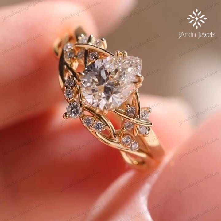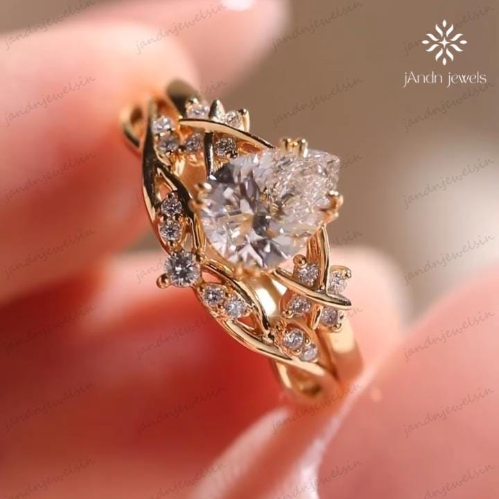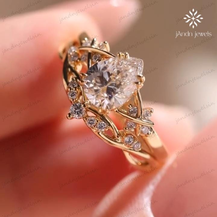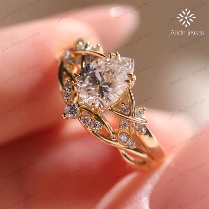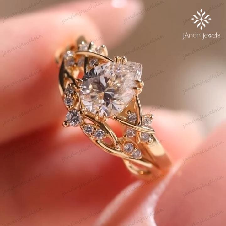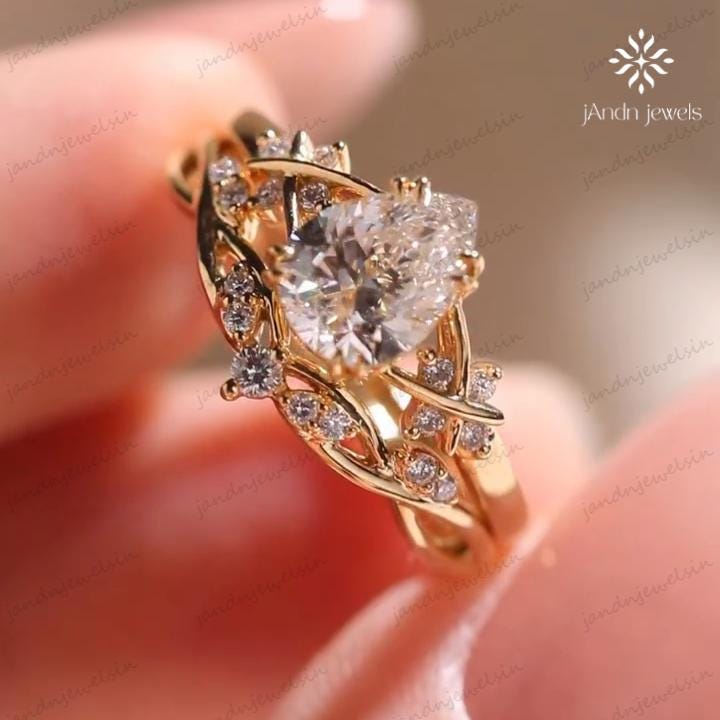 2CT Pear Cut Moissanite Engagement Ring Set in 14K Gold Bridal Ring Set Vintage Floral Bridal Wedding Ring Unique Promise Anniversary Gift