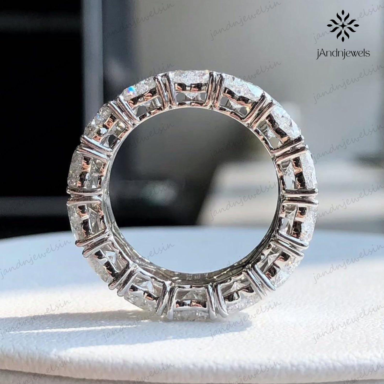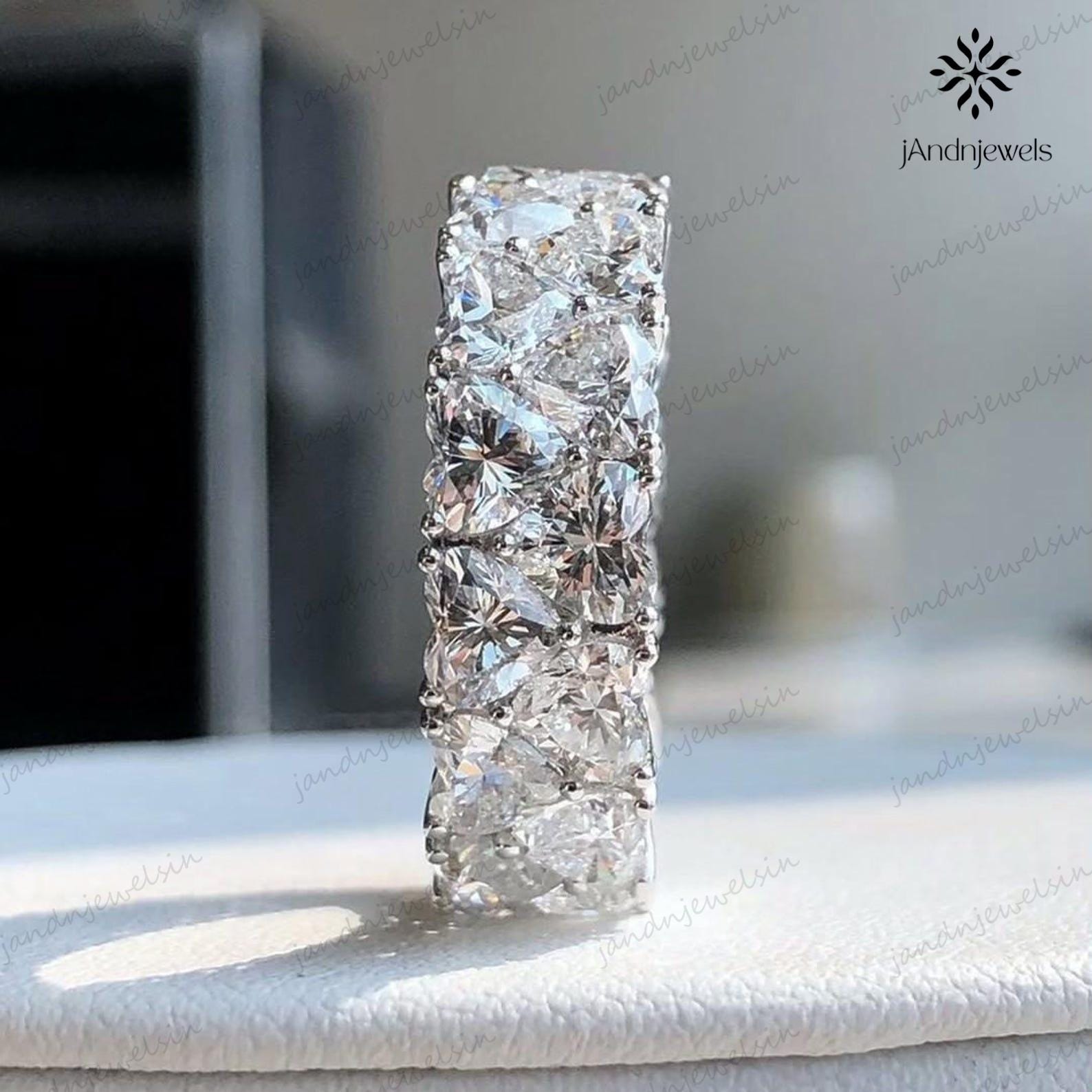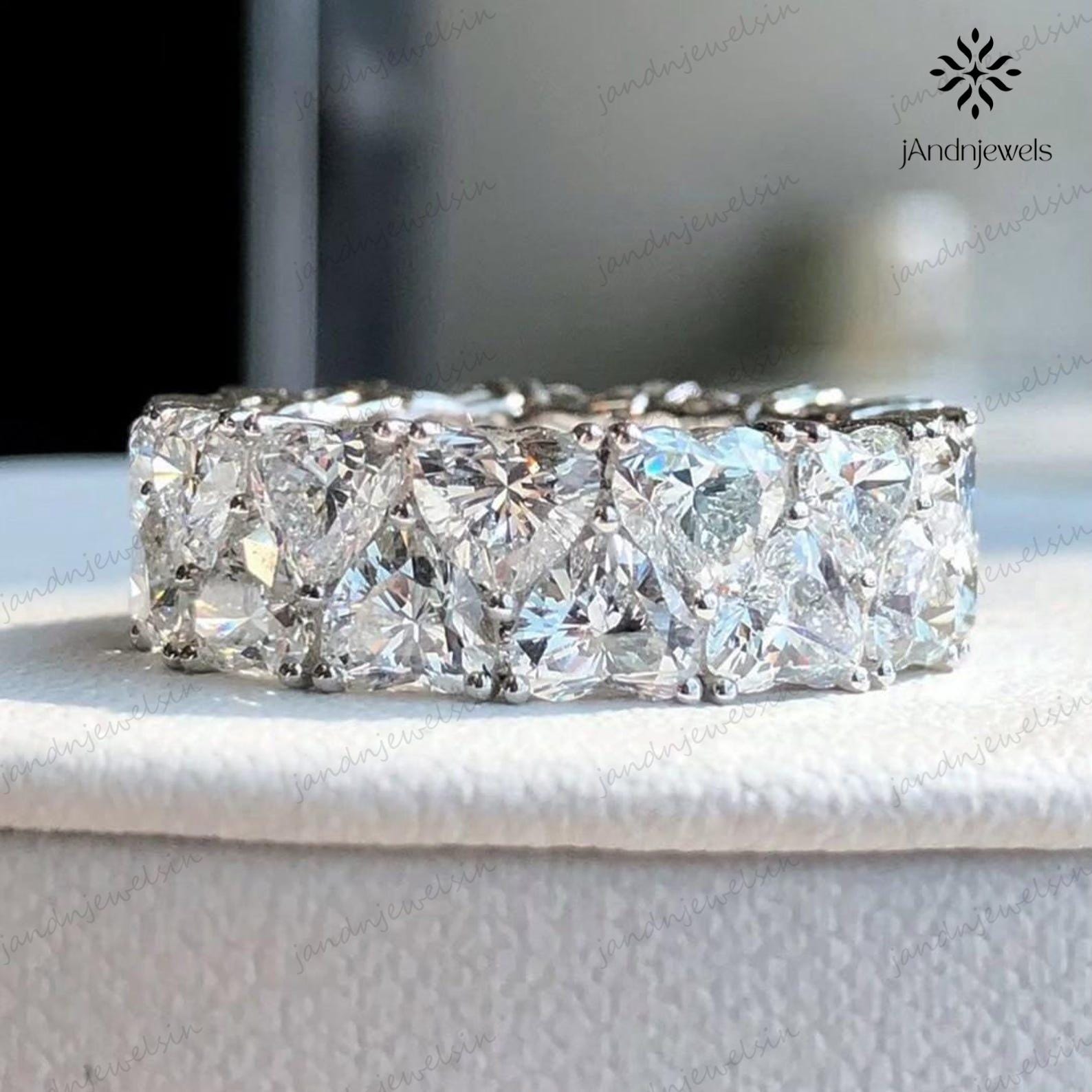 4.5 MM Heart Cut Moissanite Wedding Band Full Eternity Double Row Diamond Band Stackable Band Promise Anniversary Band Gift For Wife