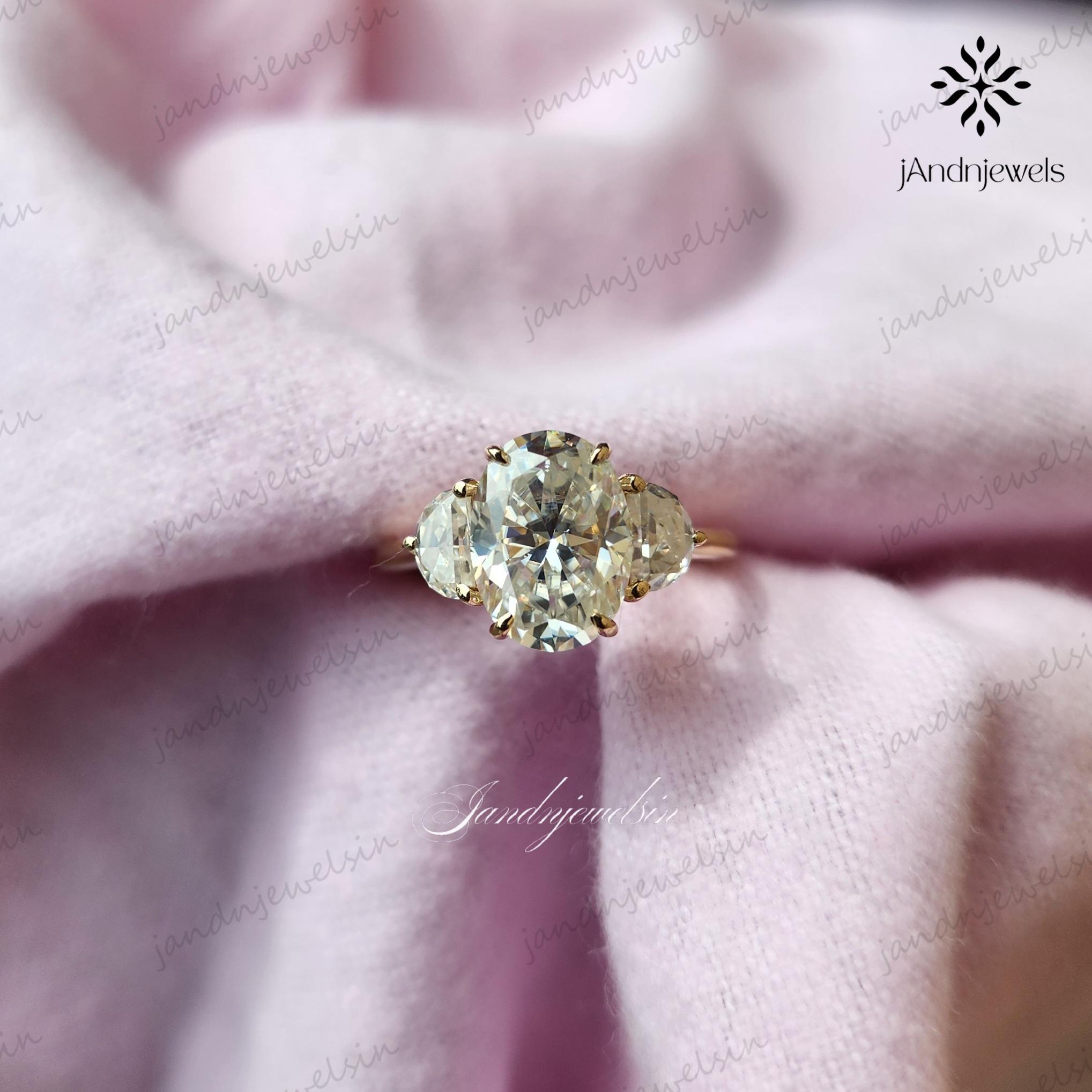 4CT Oval Moissanite Engagement Ring Three Stone Diamond Ring 14K Gold Wedding Ring Side Stone Half Moon Ring Proposal Ring Anniversary Gift