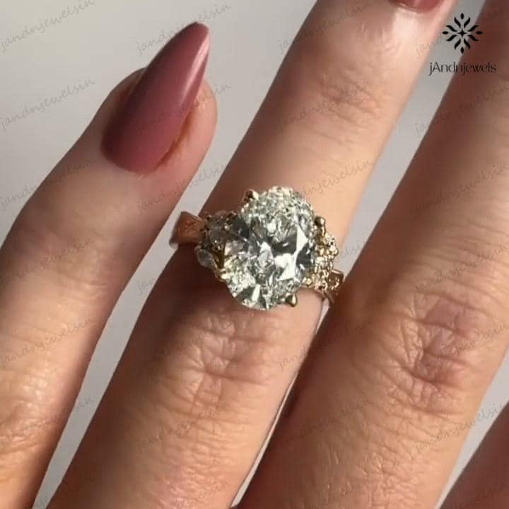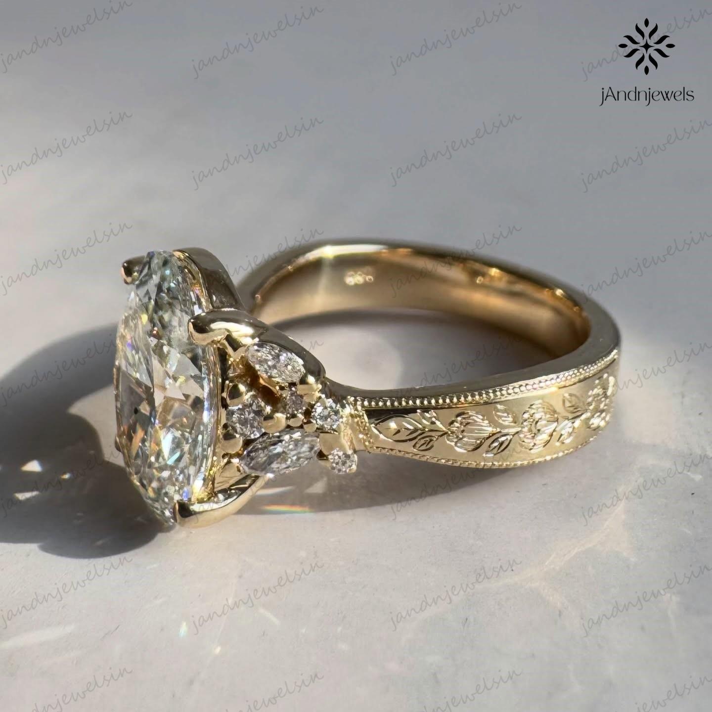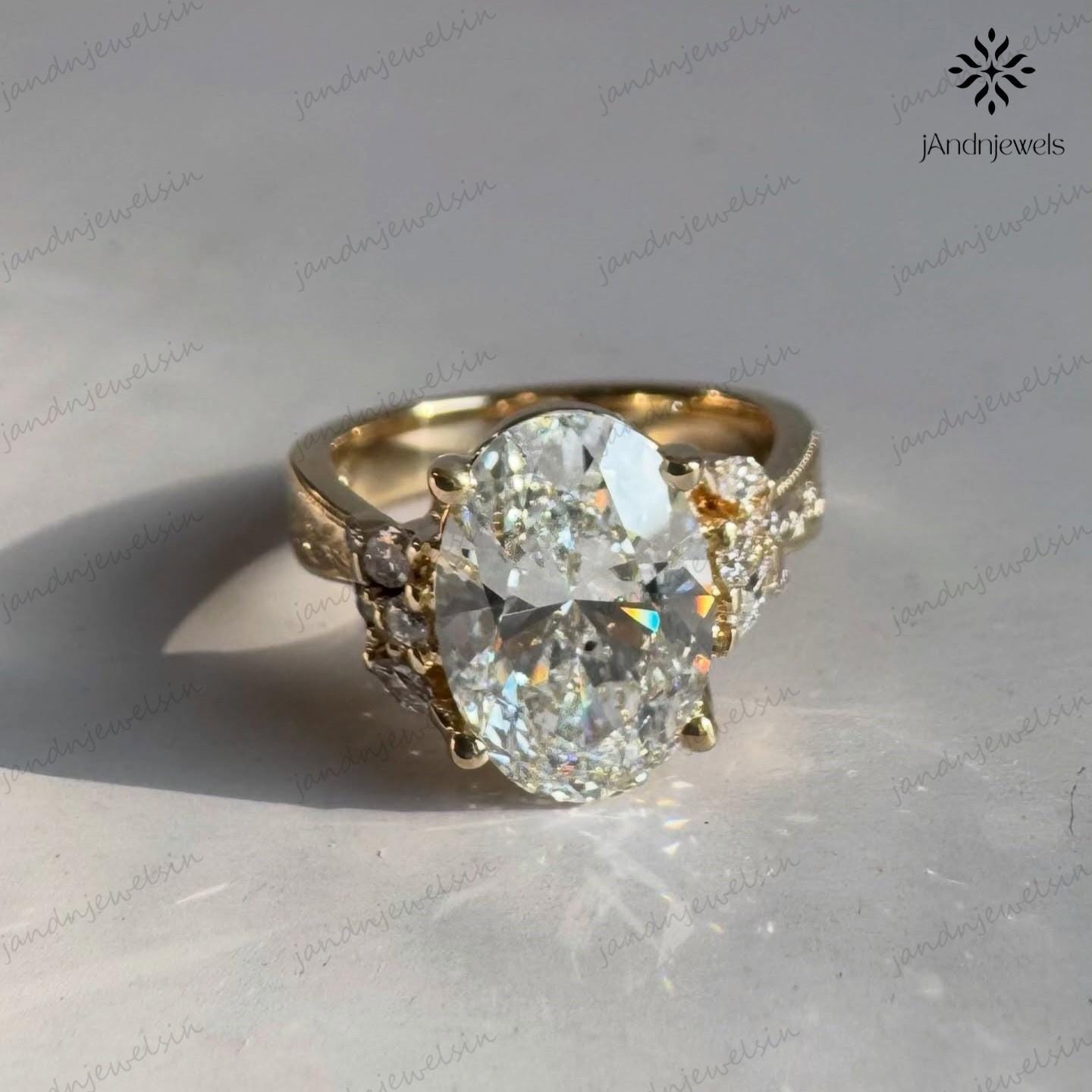 Vintage Cluster Oval Moissanite Engagement Ring 14K Solid Gold Designer Wedding Ring Diamond Bridal Ring Engraved Band Anniversary Gift, vintage ring, art deco ring, 3ct moissanite ring, oval ring, moissanite ring, cluster ring, floral ring, engraved band ring, 14k gold ring, bridal ring, engraved ring, anniversary ring, gold ring